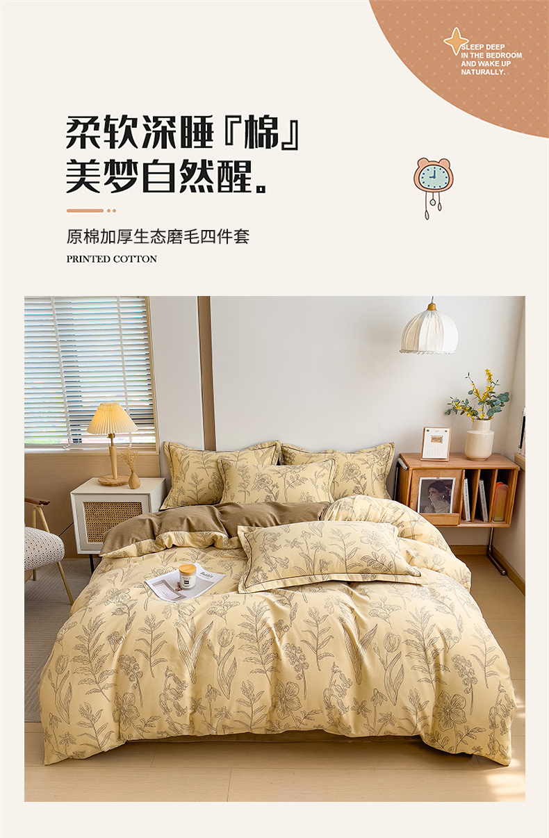 • 91家纺网 家纺一手货源 找家纺 芃成家纺 2024新款原棉加厚生态磨毛单被套 简笔花