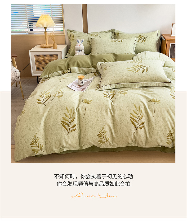 芃成家纺 2024新款原棉加厚生态磨毛单被套 绿町