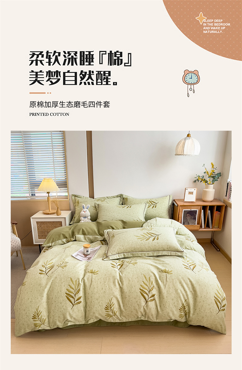 • 91家纺网 家纺一手货源 找家纺 芃成家纺 2024新款原棉加厚生态磨毛单被套 绿町