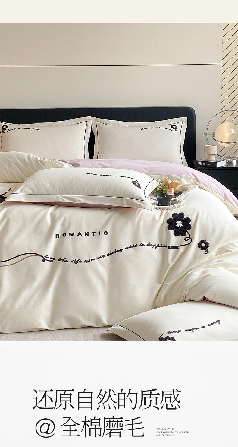 (总)涵宸家纺 2025新款全棉磨毛刺绣四件套系列-花蝴蝶,花蝴蝶-灰,花蝴蝶-奶白,花蝴蝶-浅粉