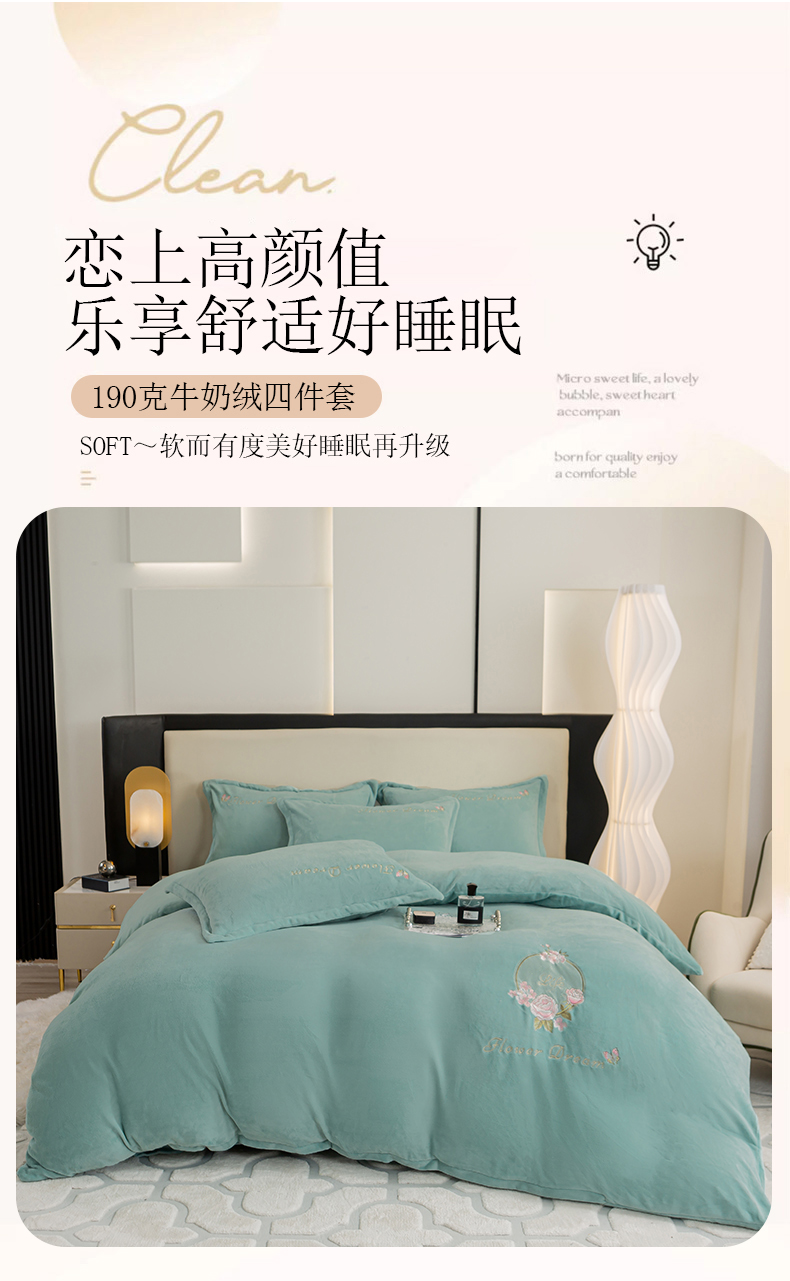 (总)(总)晶缦家纺 2025新款高克重全消光宝宝绒刺绣花四件套/高克重牛奶绒宝宝绒婴儿绒四件套,初羡-宾利蓝,繁花-蓝灰,繁花-清新绿,繁花-奶茶色,初羡-蓝灰,繁花-宾利蓝,初羡-奶茶色,初羡-时尚灰,繁花-时尚灰,初羡-豆沙,初羡-粉玉,初羡-清新绿,初羡-薰衣紫,繁花-豆沙,繁花-粉玉,繁花-薰衣紫