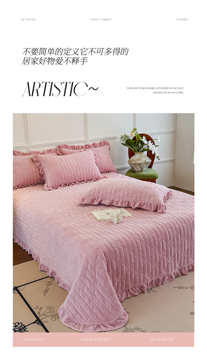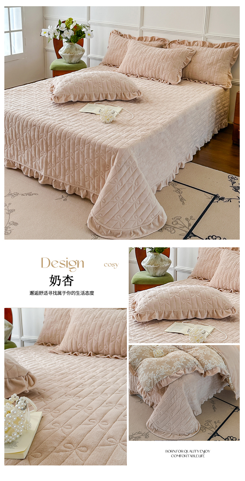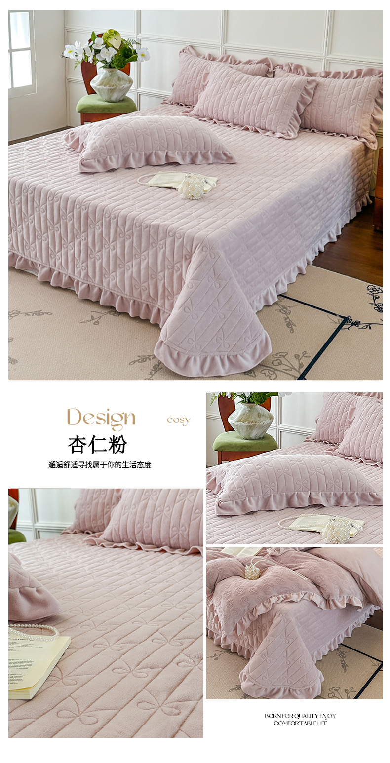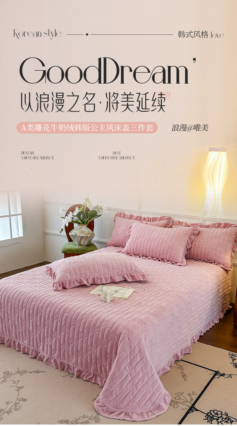 商品名称:(总)野合家纺 2025新款法式A类雕花牛奶绒韩版公主风床盖三件套