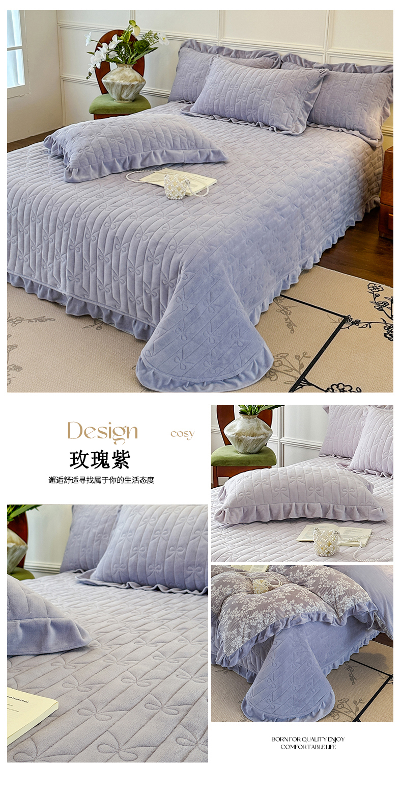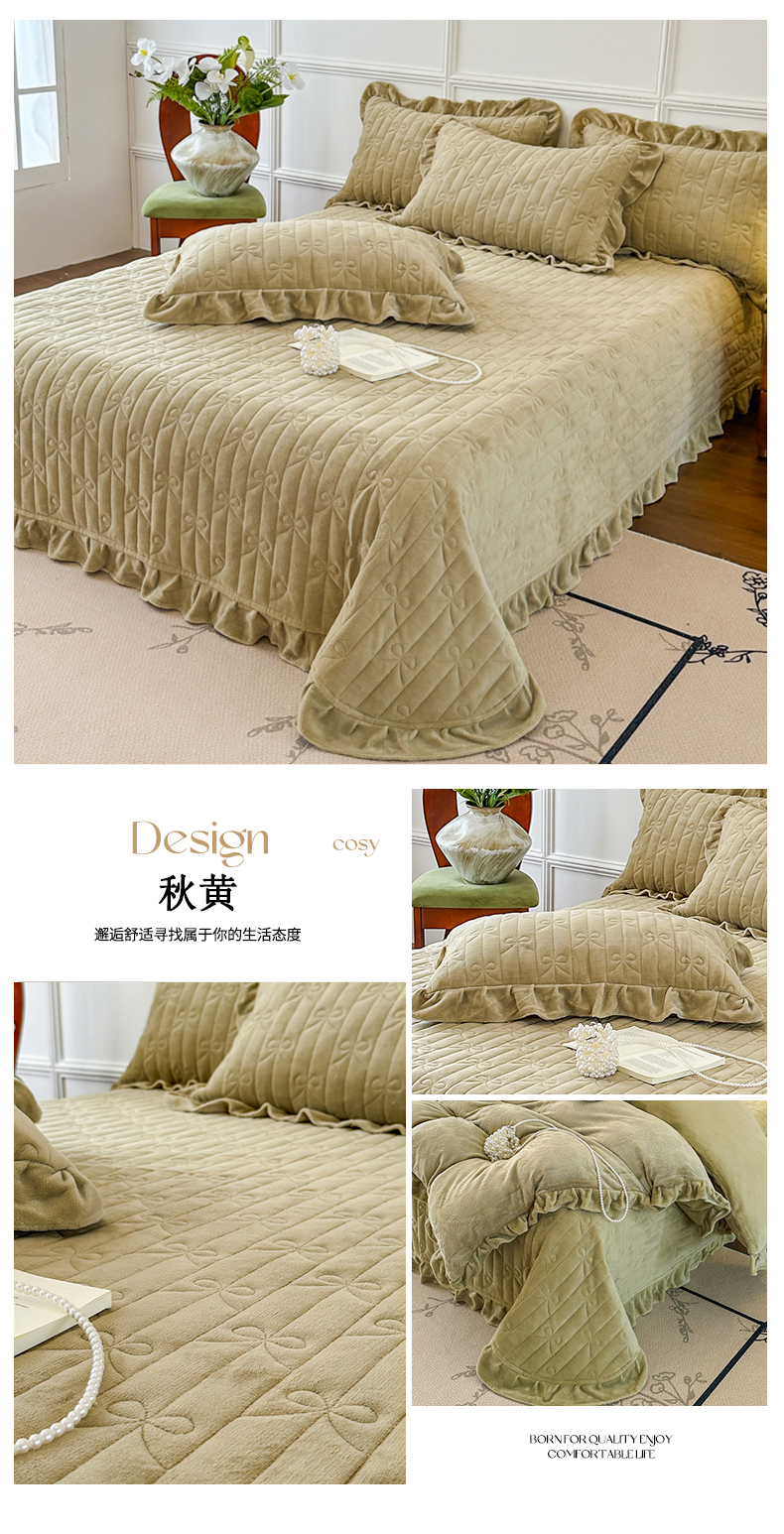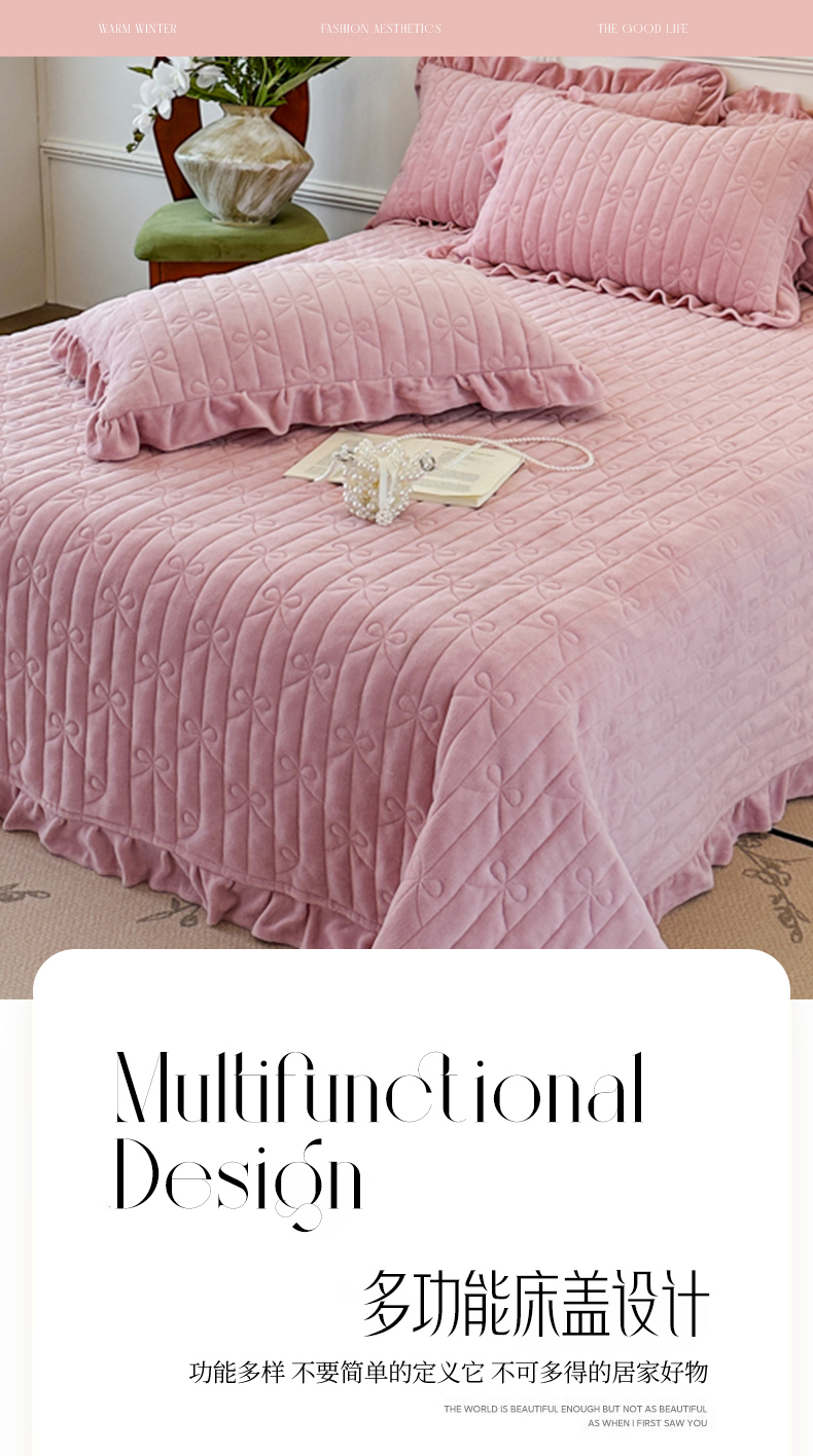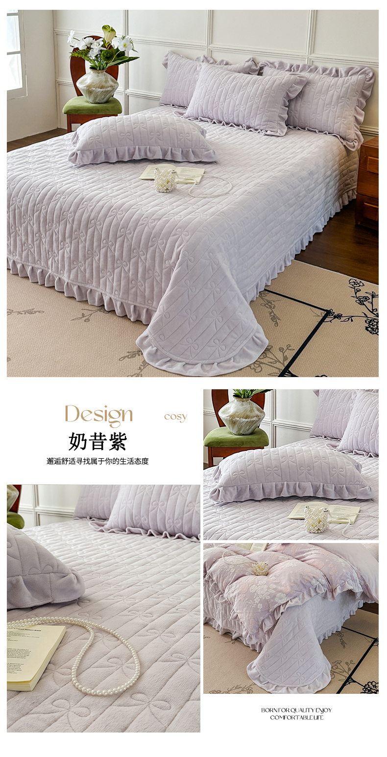 商品名称:(总)野合家纺 2025新款法式A类雕花牛奶绒韩版公主风床盖三件套