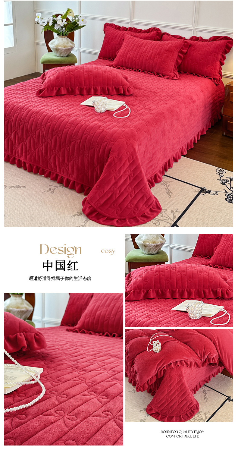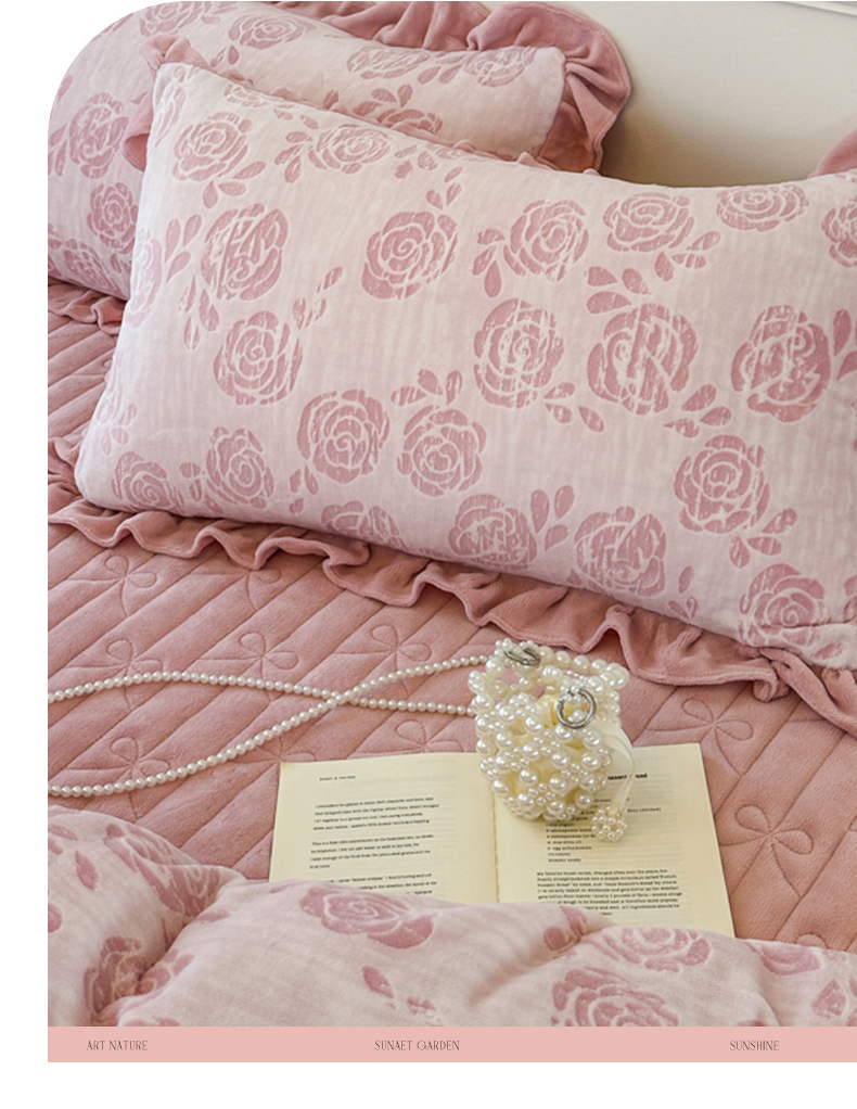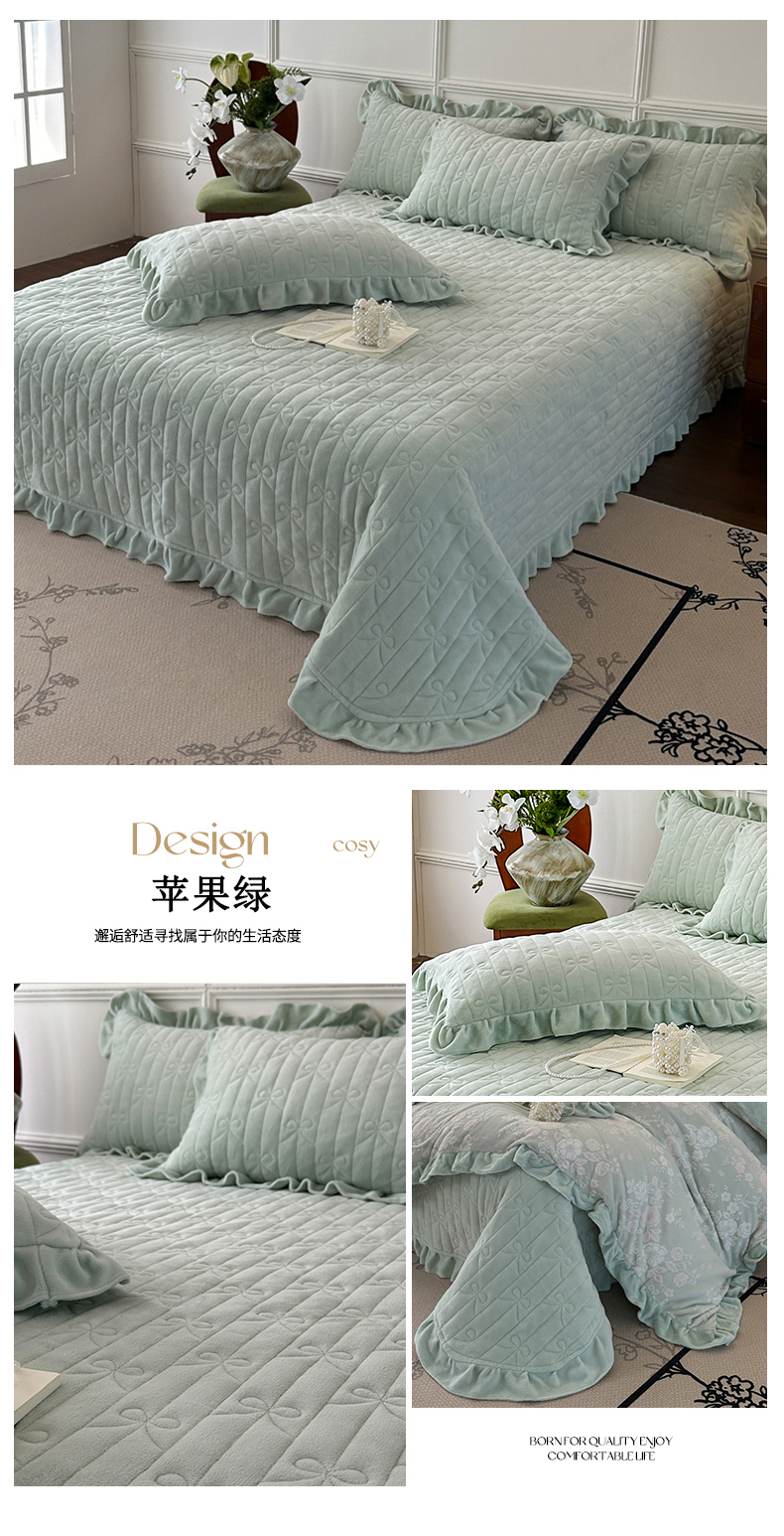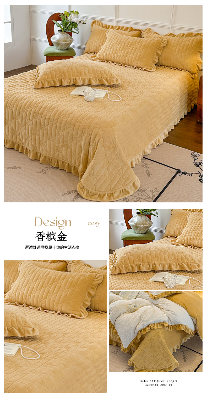 商品名称:(总)野合家纺 2025新款法式A类雕花牛奶绒韩版公主风床盖三件套