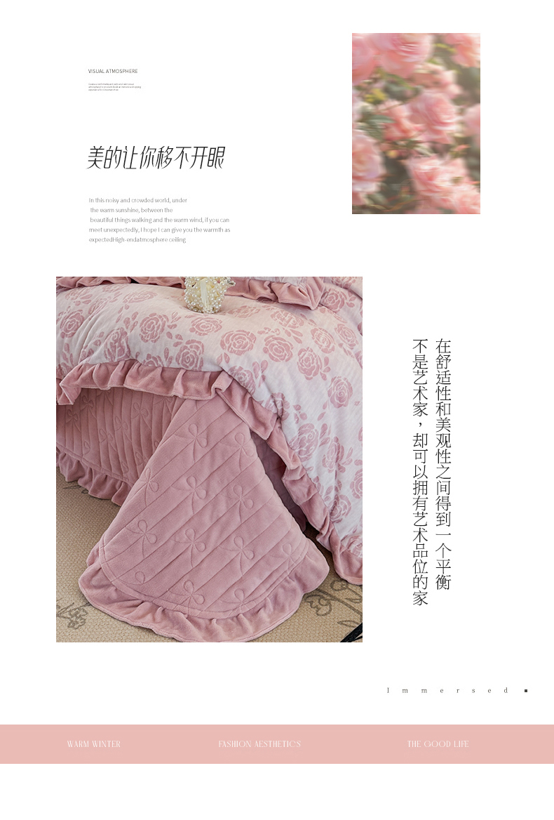 (总)野合家纺 2024新款牛奶绒雕花绒四件套韩版花边绒套件,香茶花-象牙白,香茶花-马利蓝,香茶花-杏仁粉,香茶花-R17