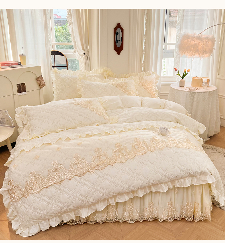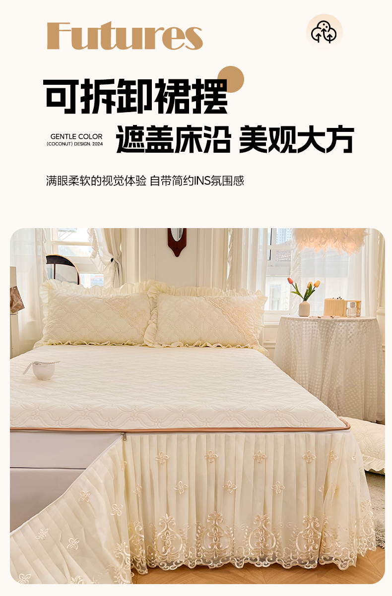 当前位置: 91家纺网 > 商品网购 > 床品套件 > 四件套 > 全棉普通四件套 > 罗艺轩 2024新款公主风全棉加厚可脱卸床笠式床裙四件套 慕雅-迷雾灰