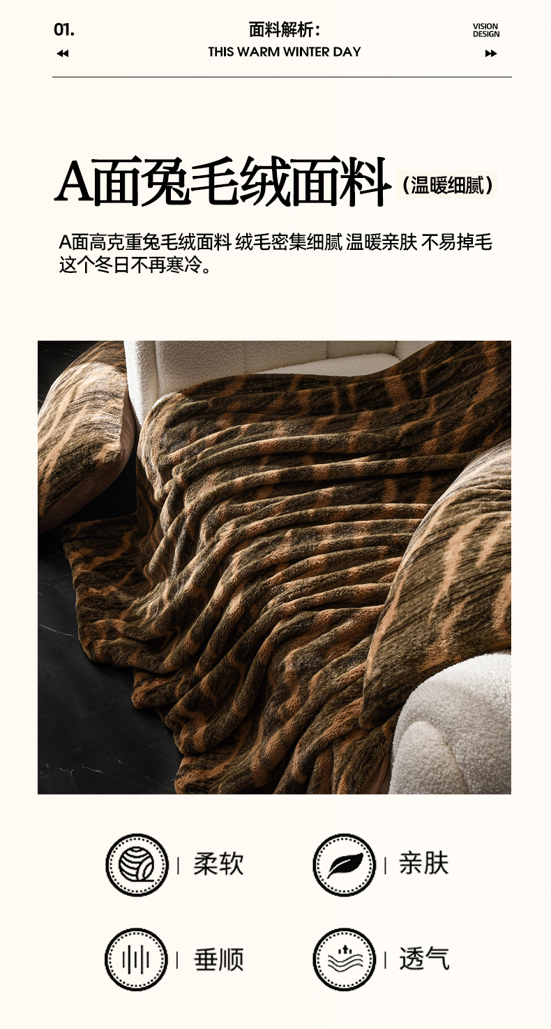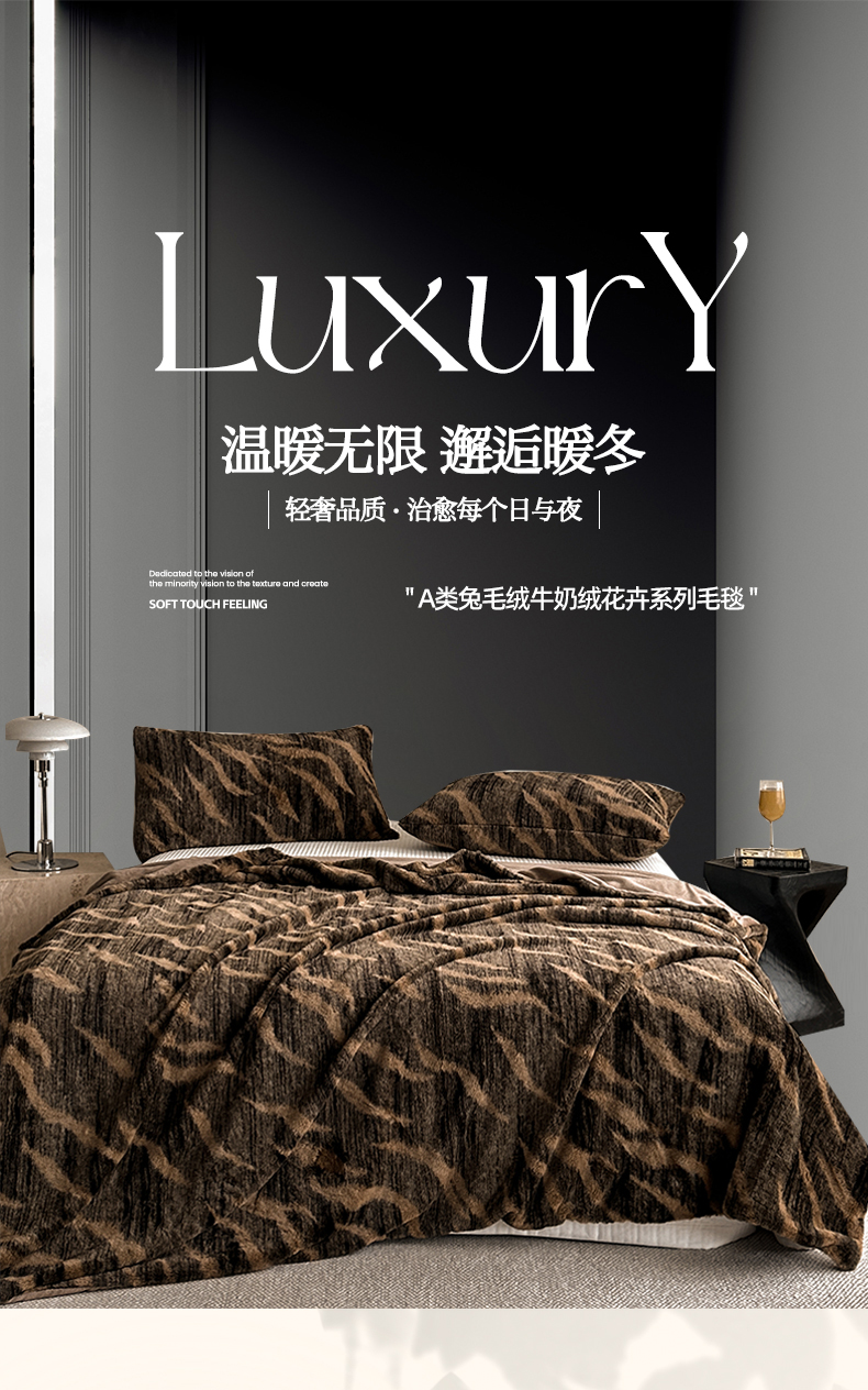 网客 2024新款兔毛绒毯-繁花系列 鎏金岁月