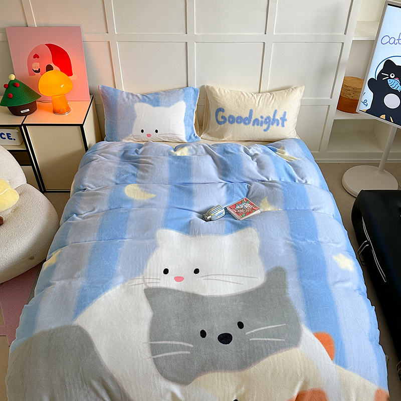 (总)桃喜 2025新款秋冬牛奶绒床笠三件套(会员-3),美拉德甜点,三个小伙伴,三只小猫,圣诞雪人,小猫的早八时刻,组合图