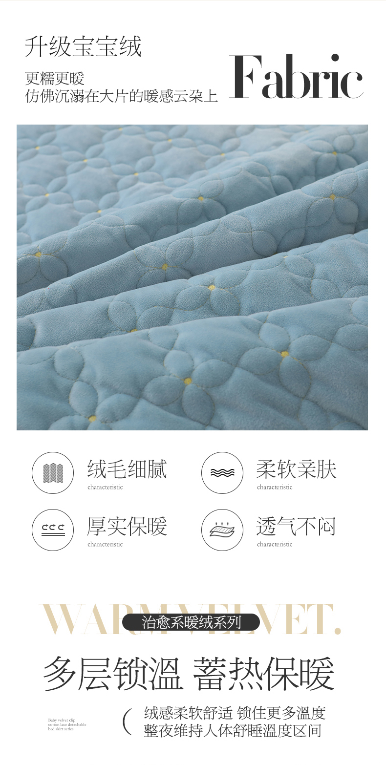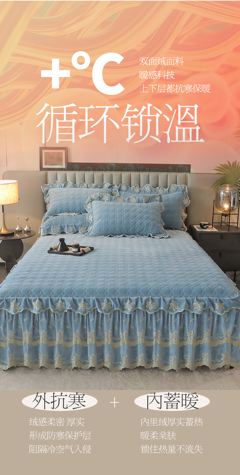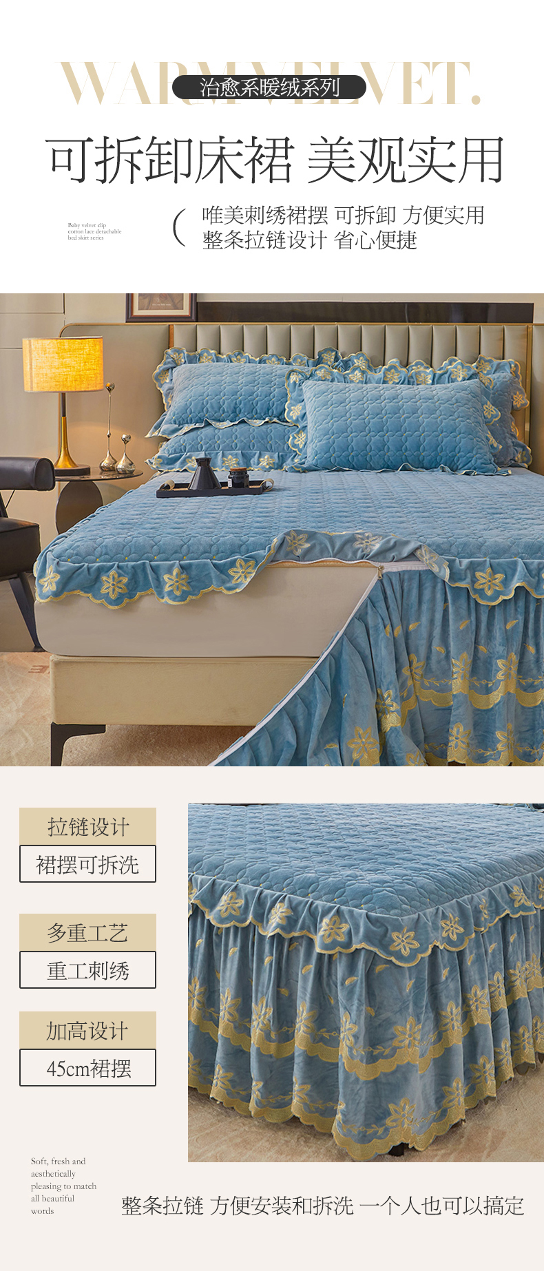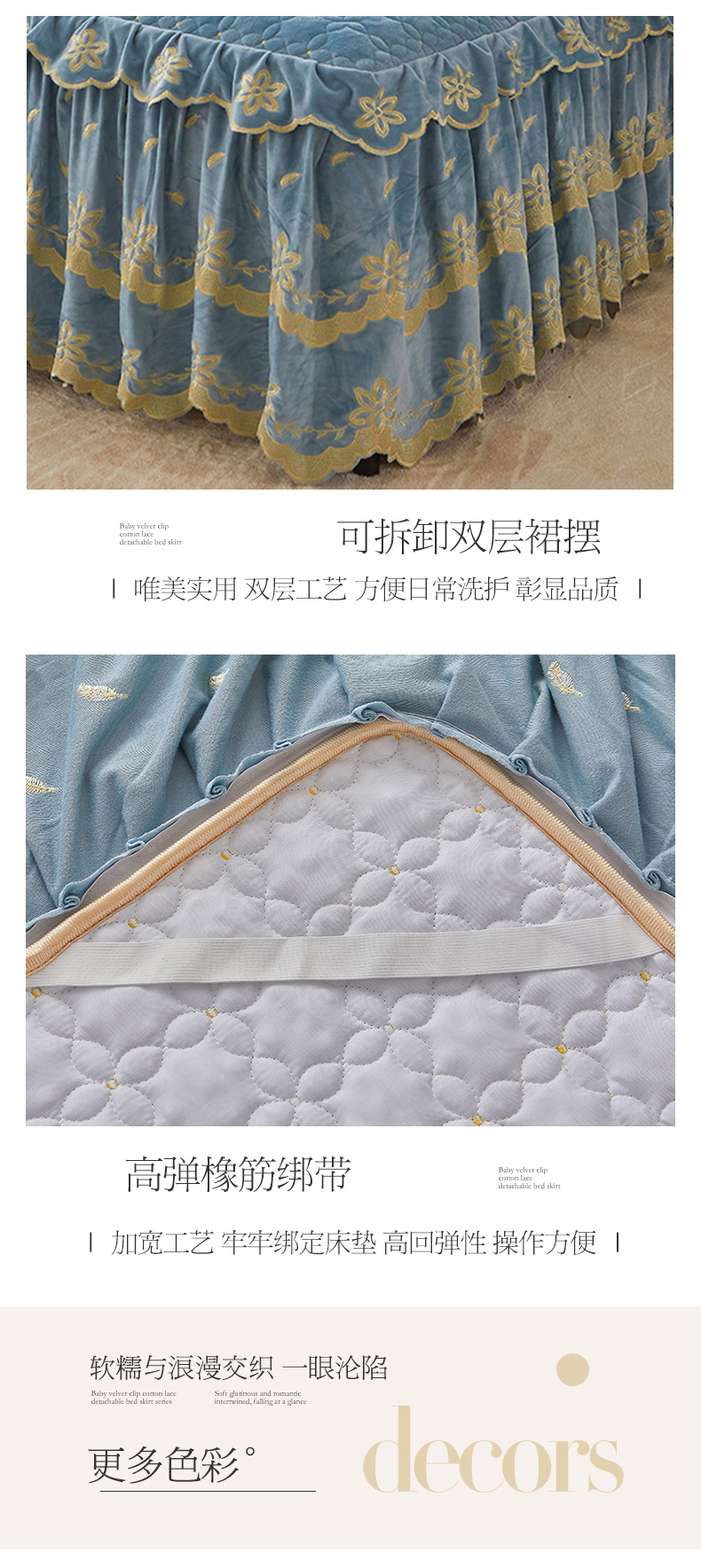 • 91家纺网 家纺一手货源 找家纺 虹星家纺 2024新款可拆卸宝宝绒夹棉床裙三件套-盛世芳华 盛世芳华 天蓝