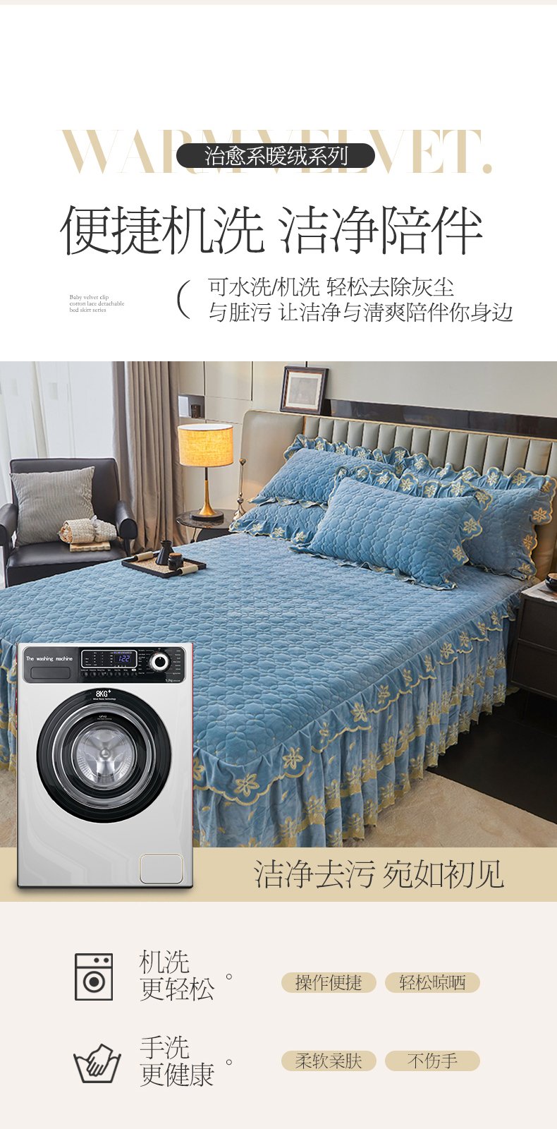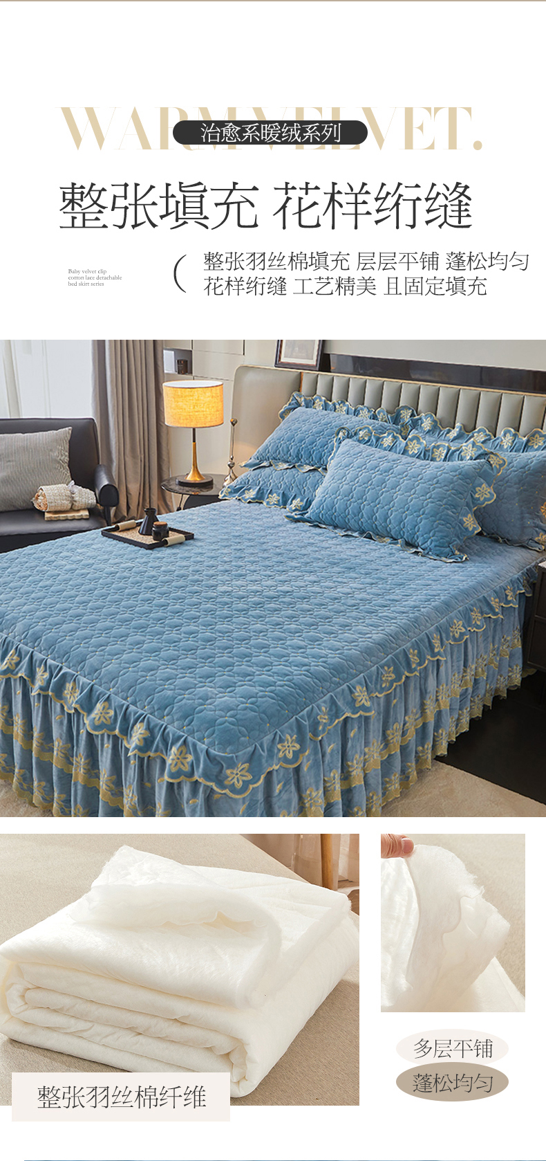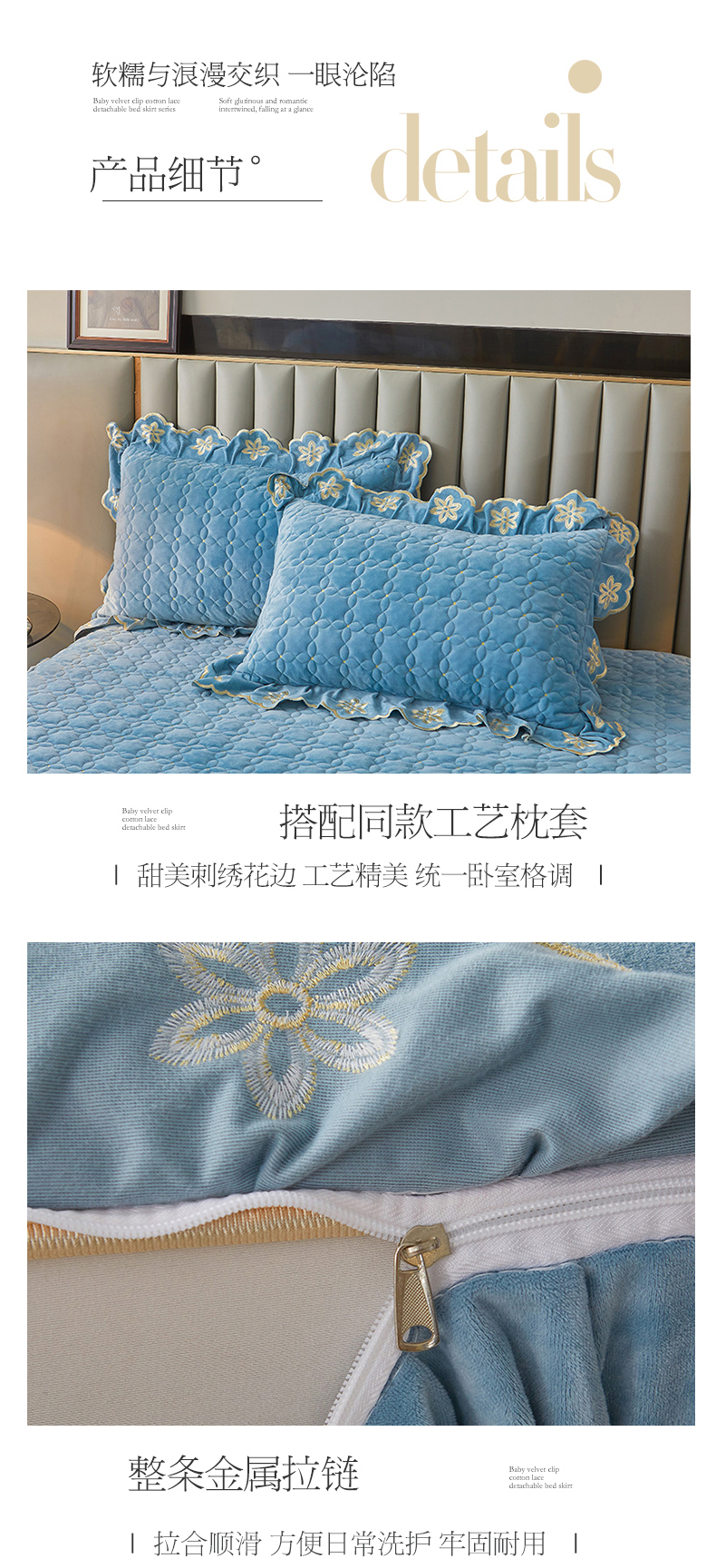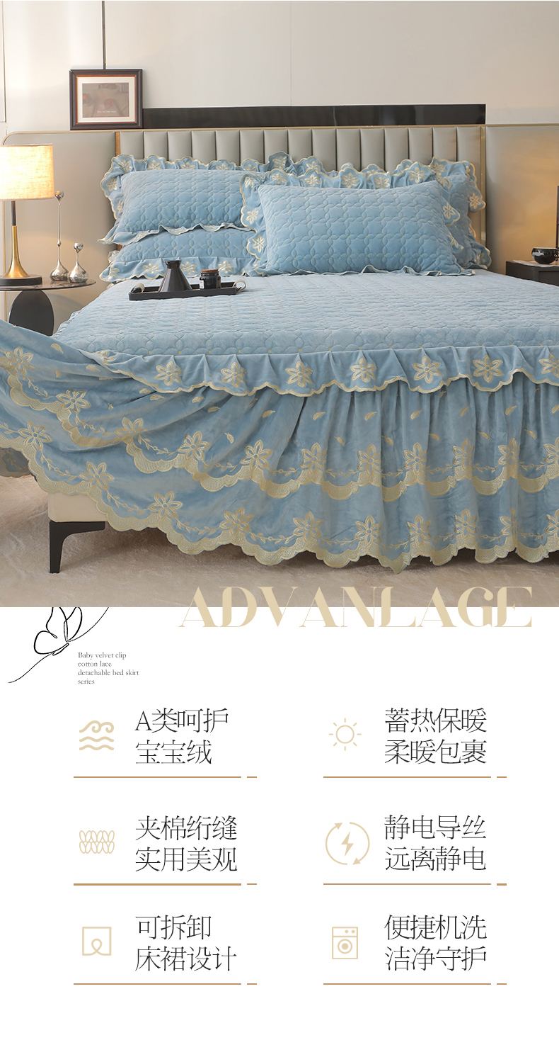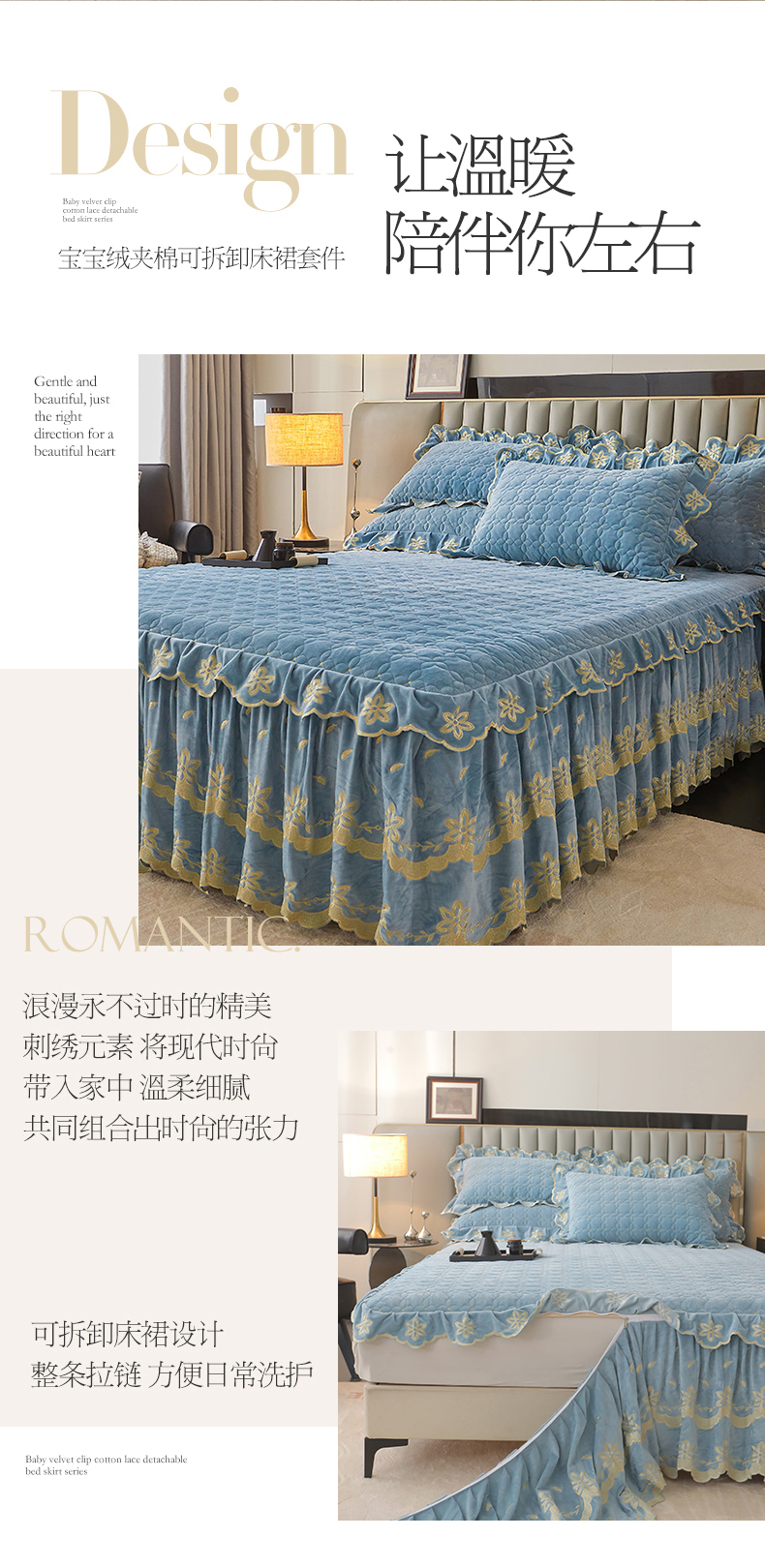 虹星家纺 2024新款可拆卸宝宝绒夹棉床裙三件套-盛世芳华 盛世芳华 天蓝