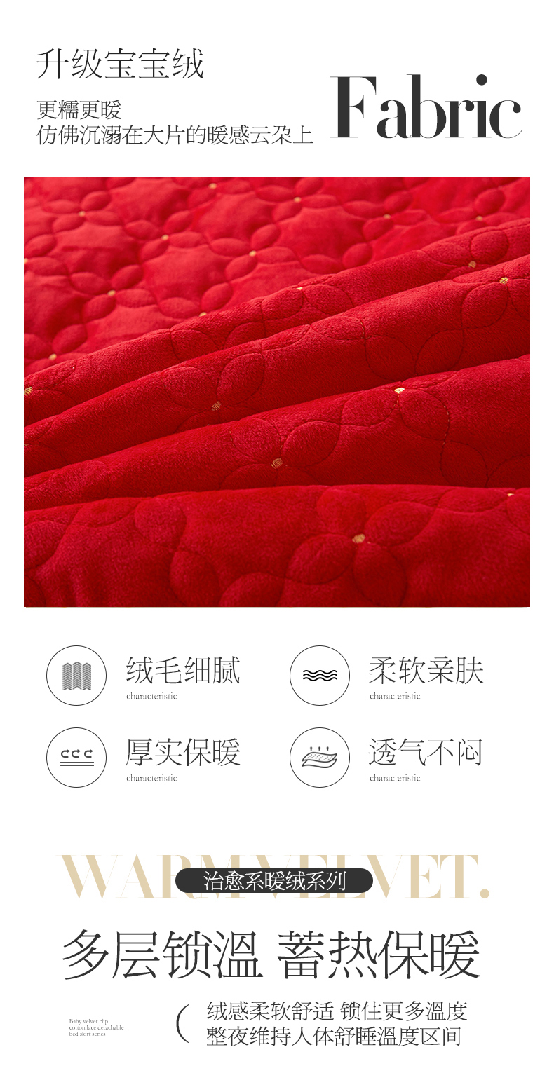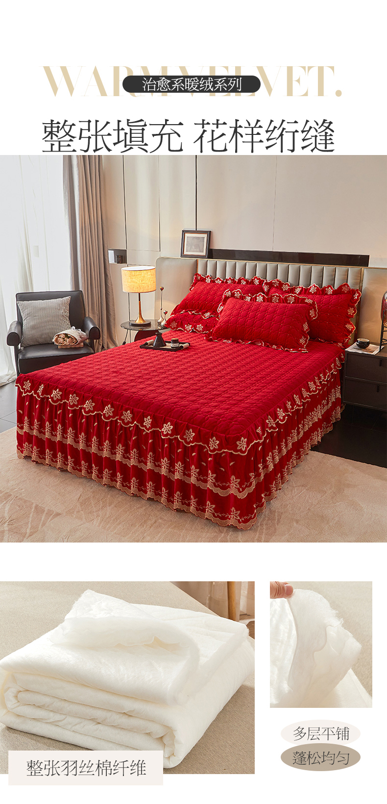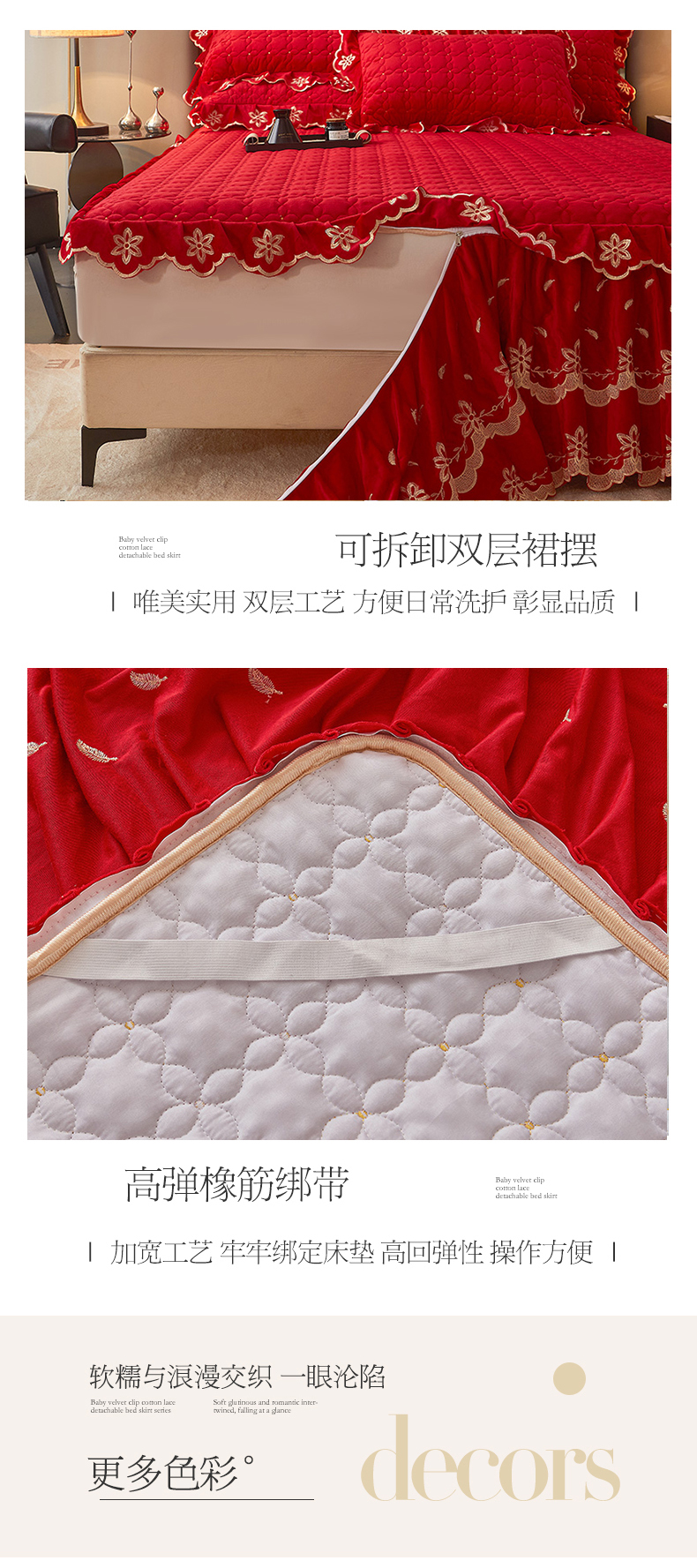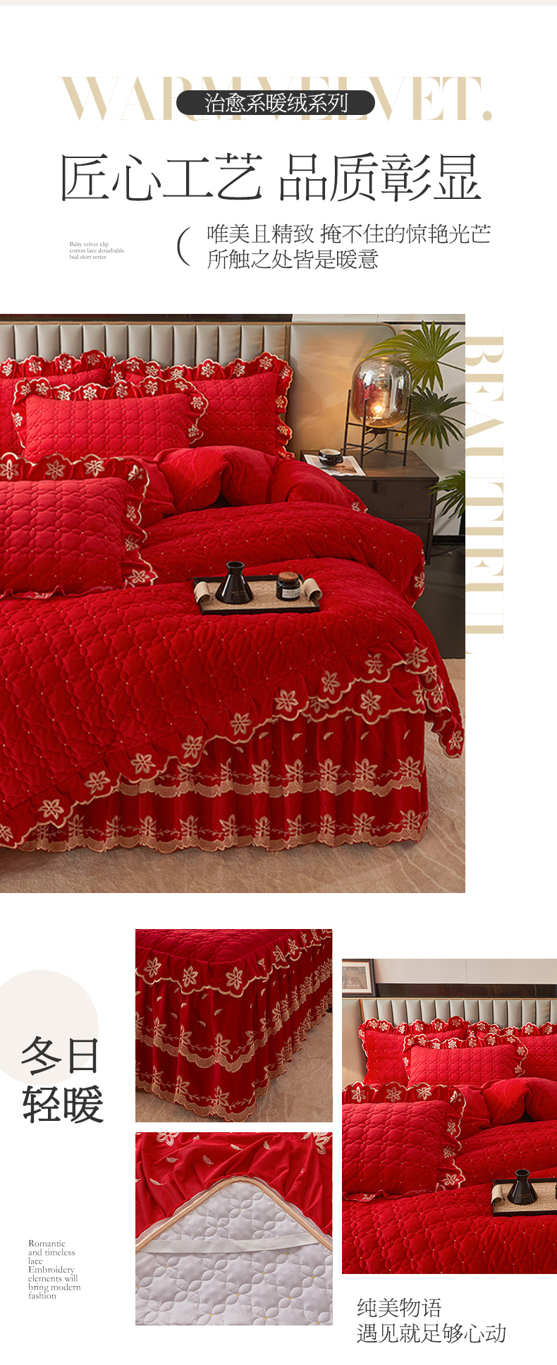 当前位置: 91家纺网 > 商品网购 > 床品套件 > 四件套 > 其它四件套 > 虹星家纺 2024新款可拆卸宝宝绒夹棉床裙三四件套-盛世芳华 盛世芳华 大红