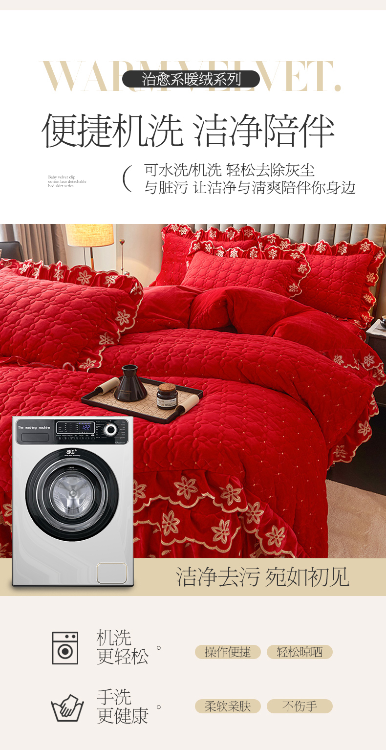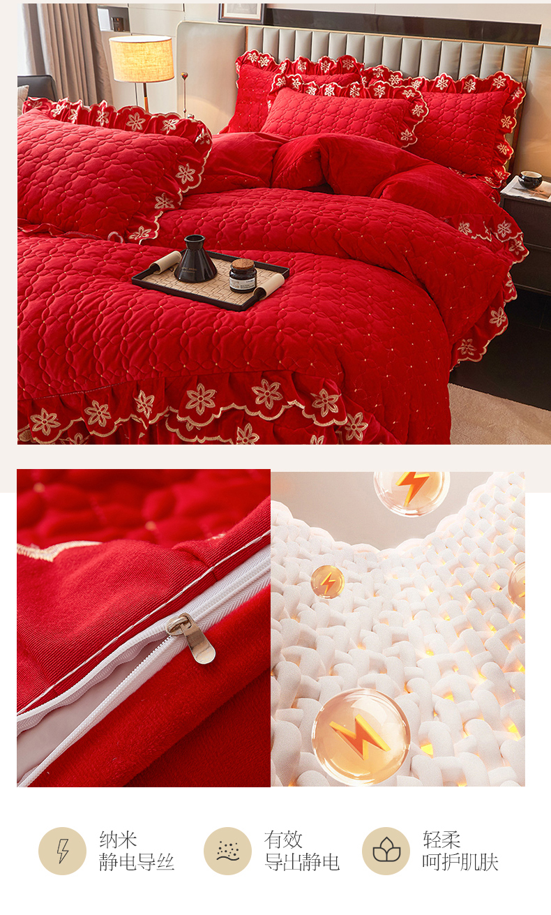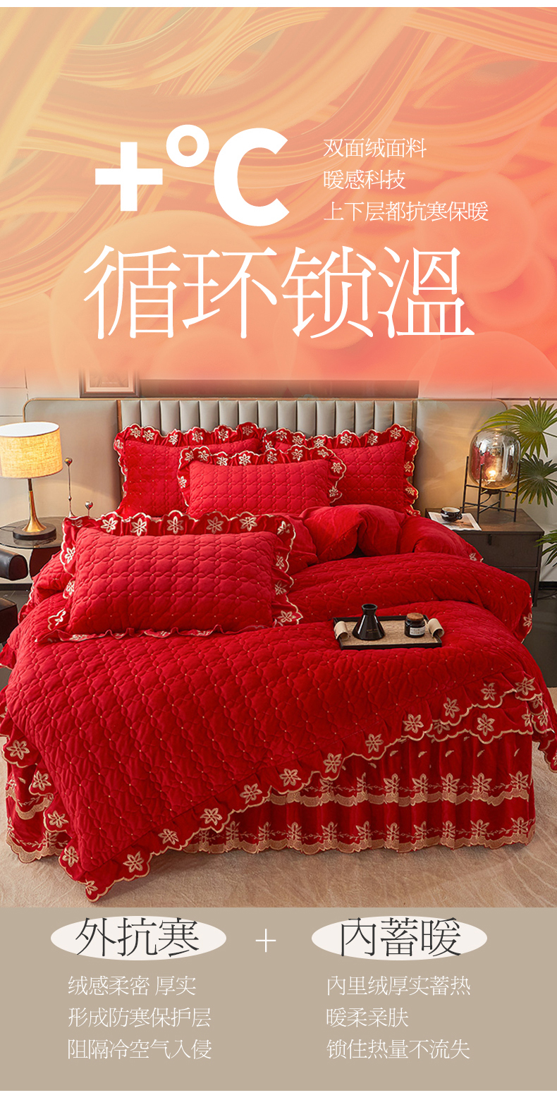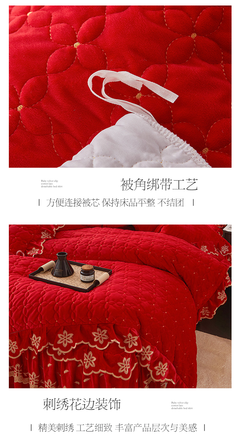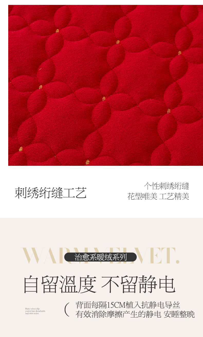 当前位置: 91家纺网 > 商品网购 > 床品套件 > 四件套 > 其它四件套 > 虹星家纺 2024新款可拆卸宝宝绒夹棉床裙三四件套-盛世芳华 盛世芳华 大红