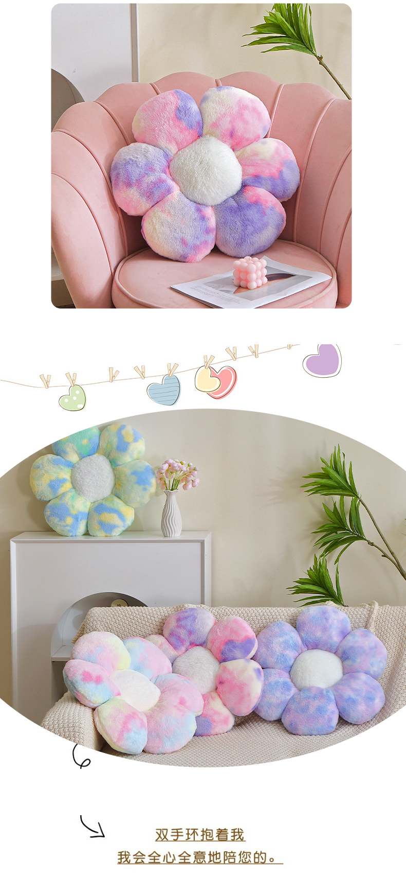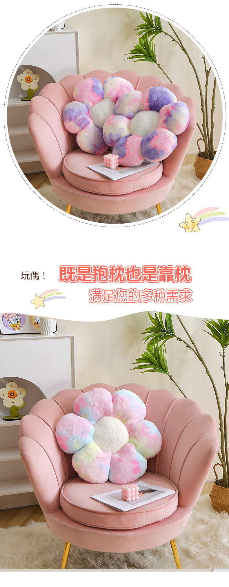 2024新款秋冬扎染绒玩偶公仔儿童玩具礼品直播赠品-扎染花瓣 扎染-绿色