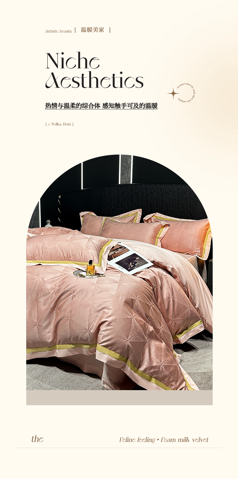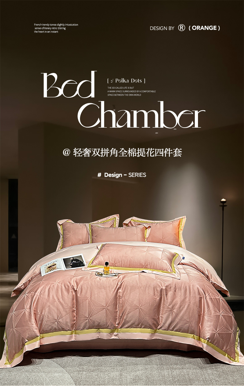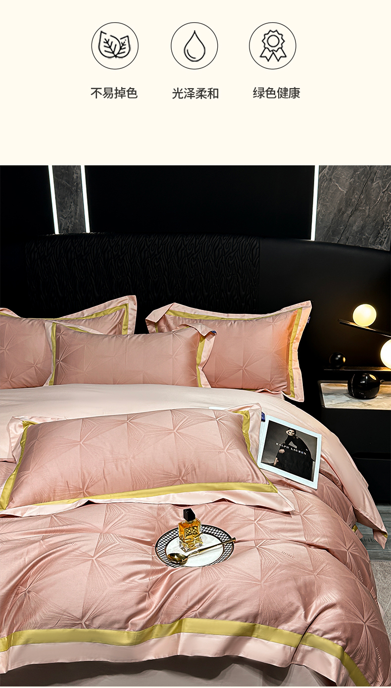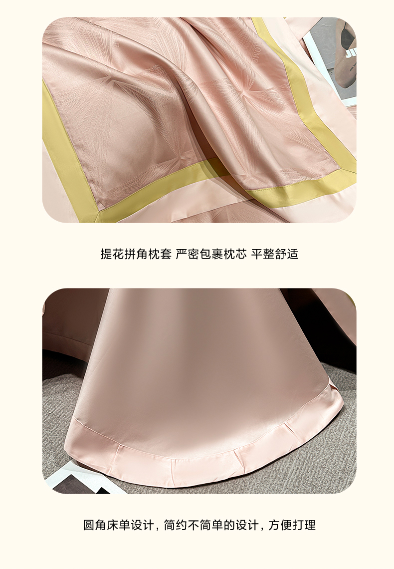 商品名称:2024新款轻奢双拼角全棉提花四件套 格拉斯-粉玉