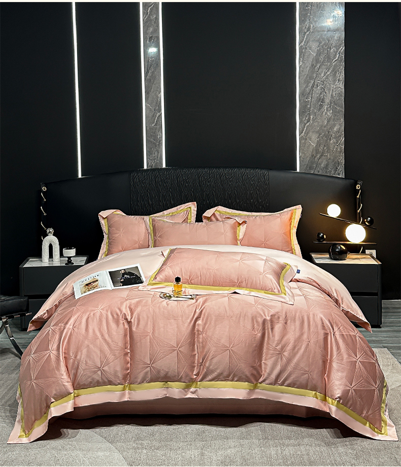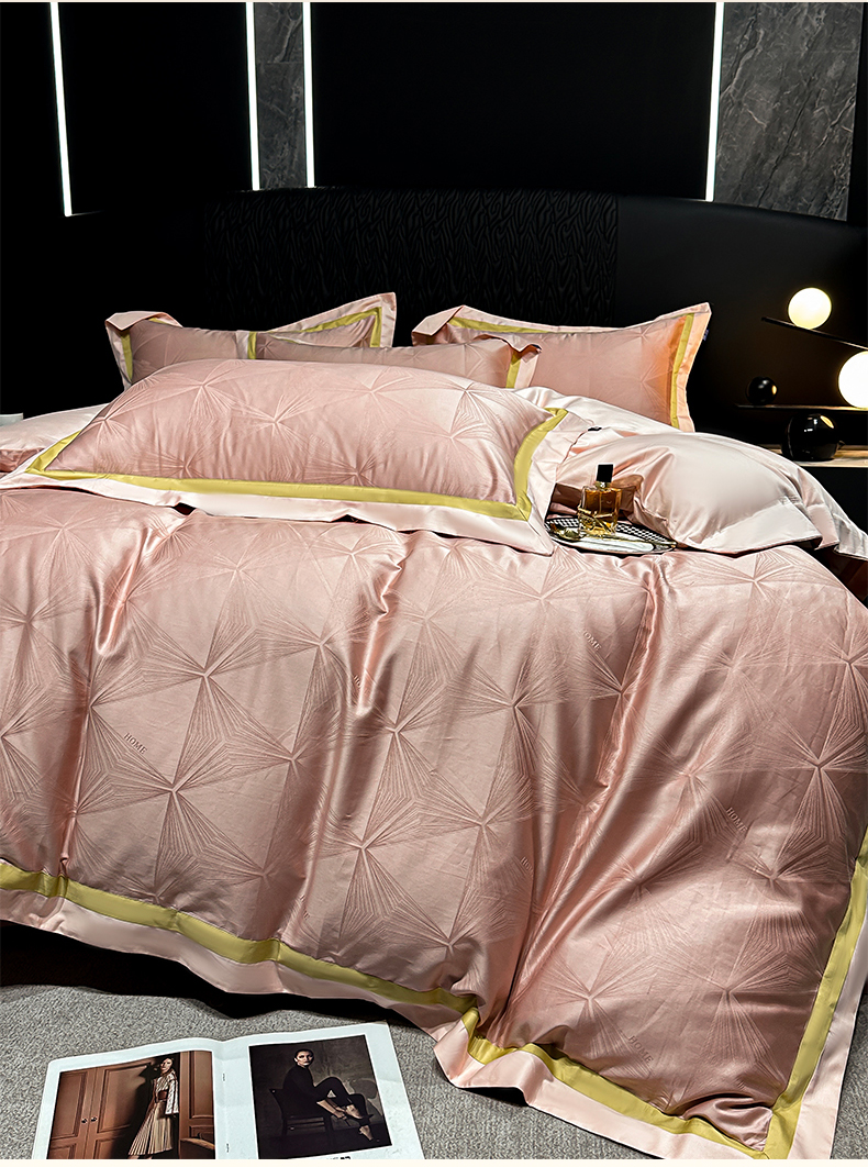 2024新款轻奢双拼角全棉提花四件套 格拉斯-粉玉