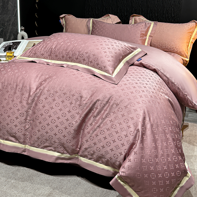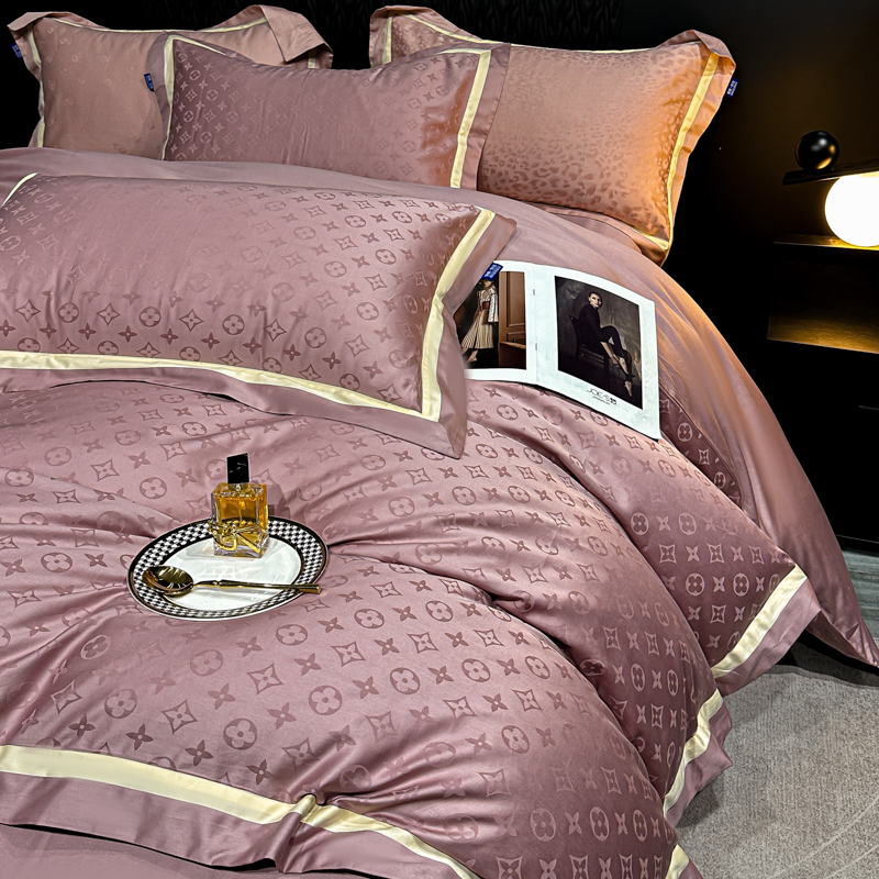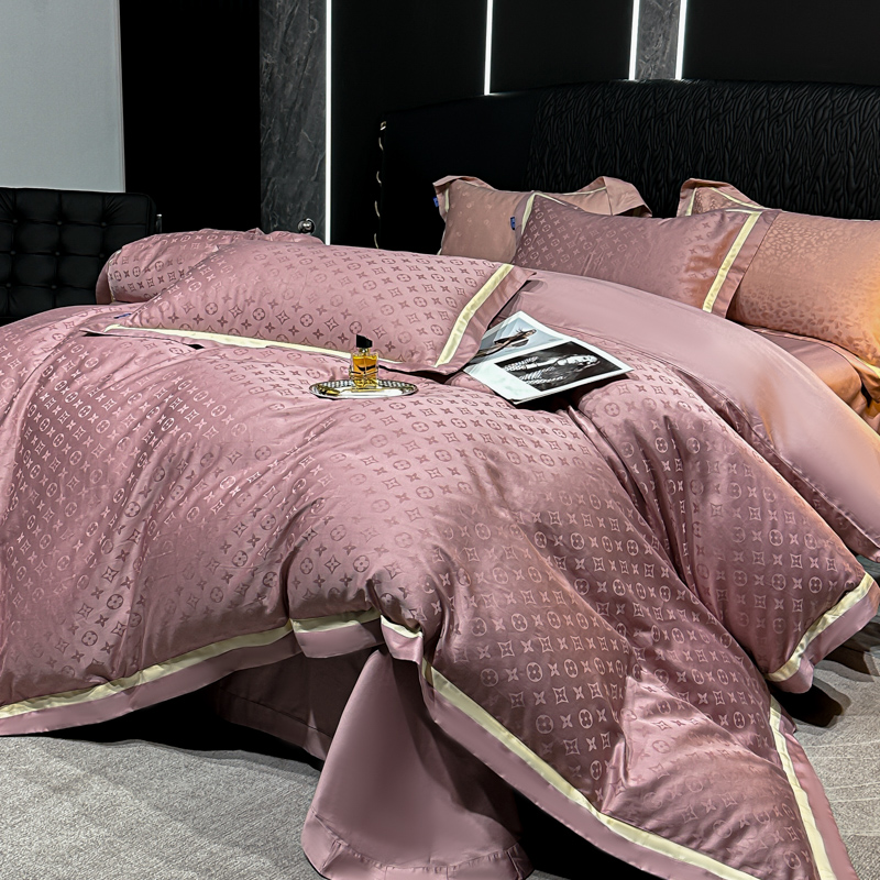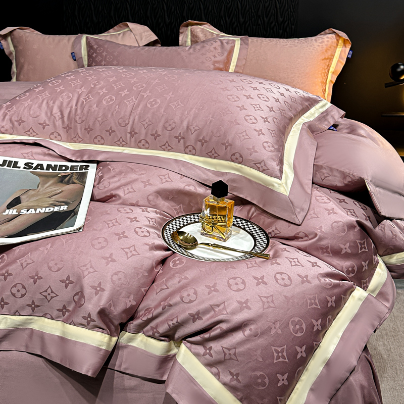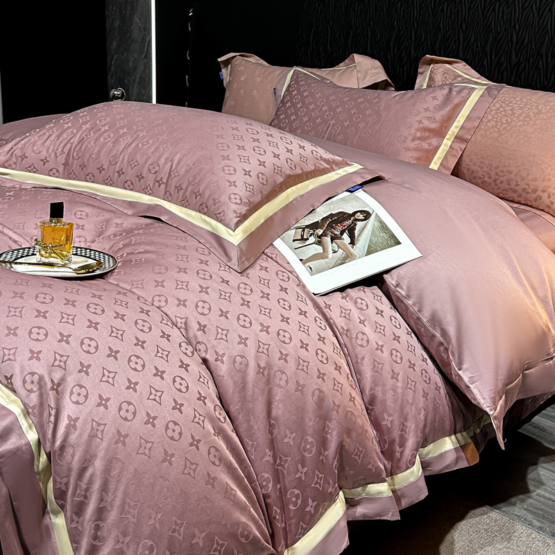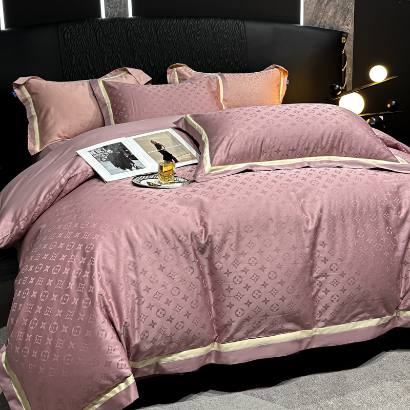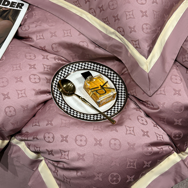 商品名称:2024新款轻奢双拼角全棉提花四件套 遇见经典-梅子粉
