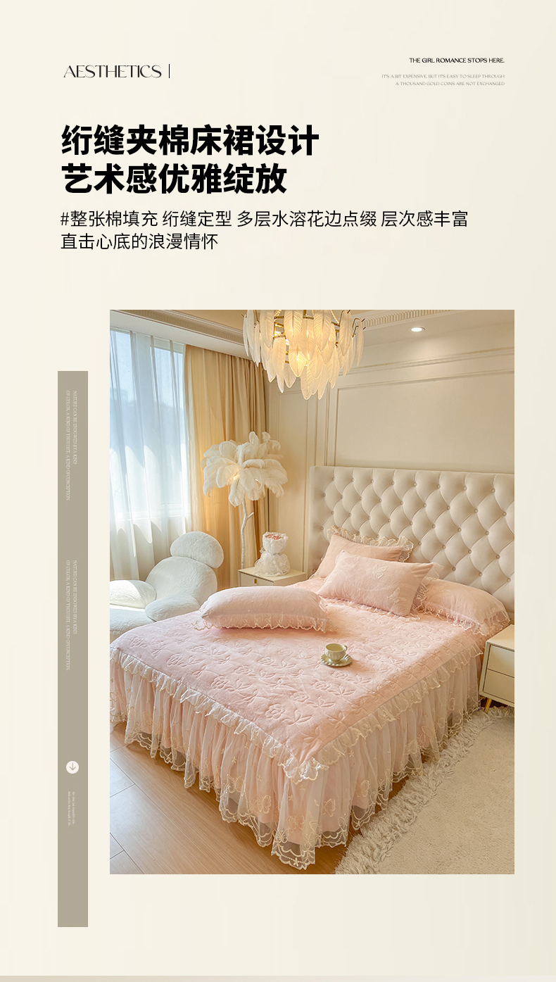 (总)网红馆(ck家纺) 2026新款全棉蕾丝花边床裙款床笠晨暮花间系列,绯红,粉色,麦绿,米色,浅紫,雾蓝