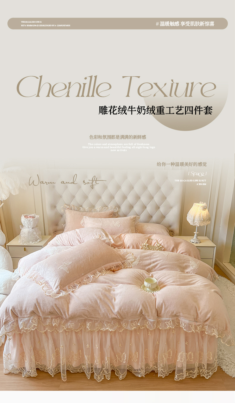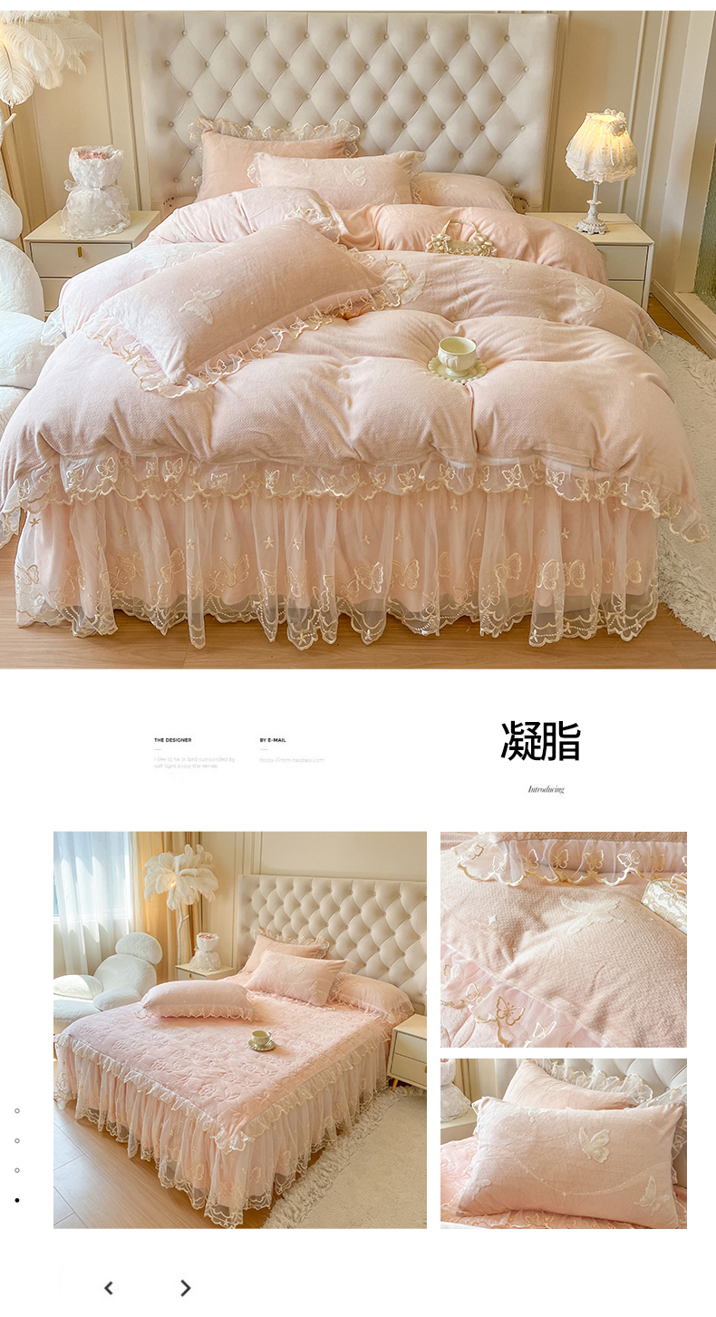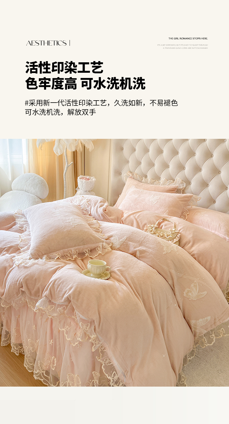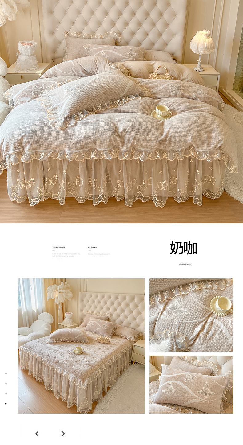 商品名称:(总)网红馆(ck家纺) 2025新款雕花绒牛奶绒重工艺床裙四件套--蝴蝶梦境