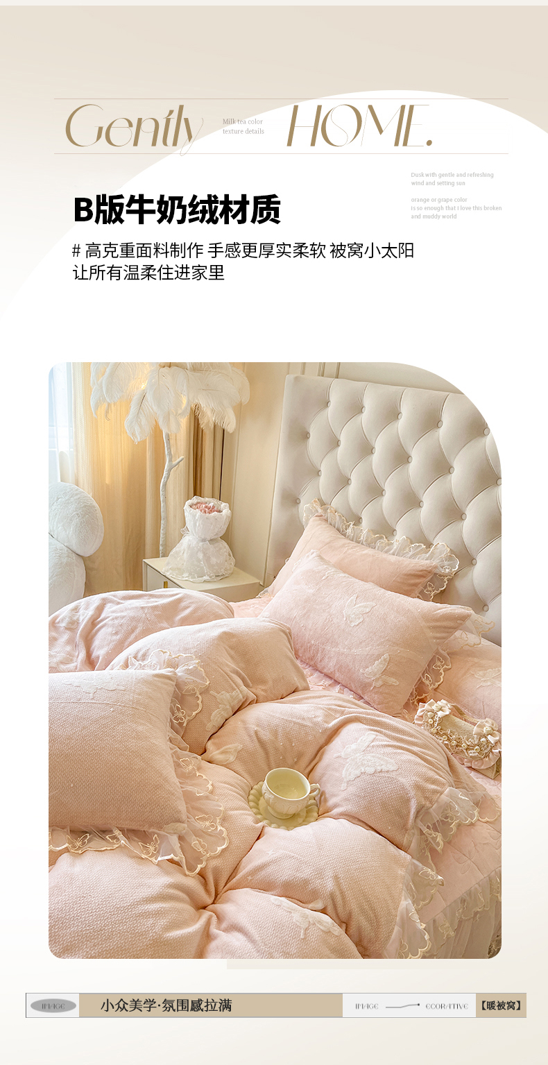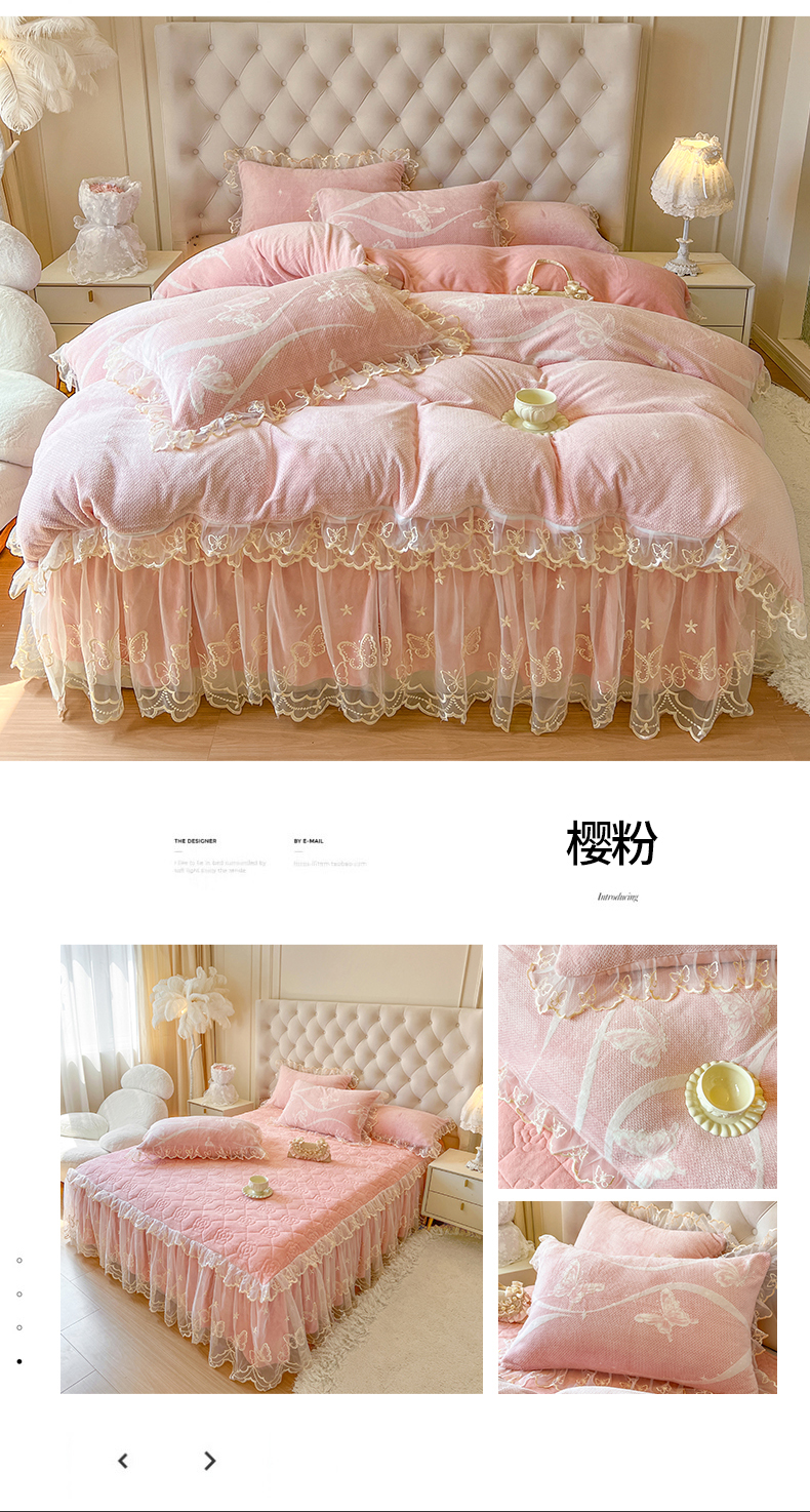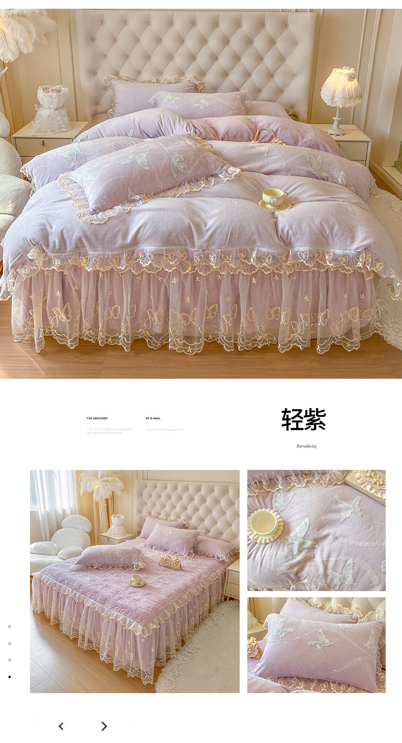商品名称:(总)网红馆(ck家纺) 2025新款雕花绒牛奶绒重工艺床裙四件套--蝴蝶梦境