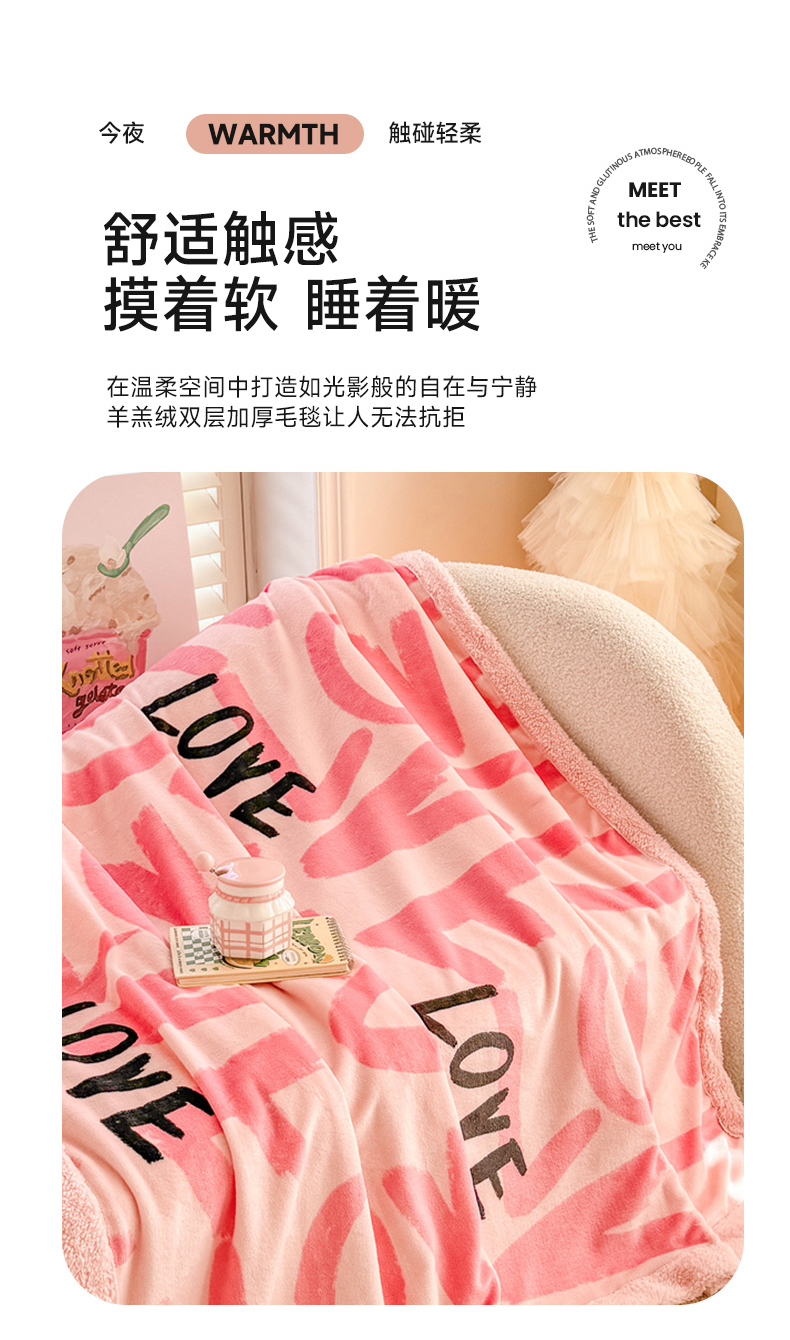 商品名称:我心家纺 2024新款高克重羊羔绒毛毯毯子 炽热心意