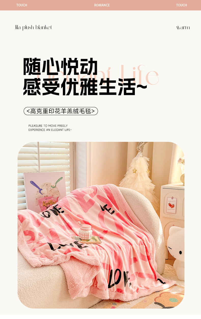 我心家纺 2024新款高克重羊羔绒毛毯毯子 炽热心意