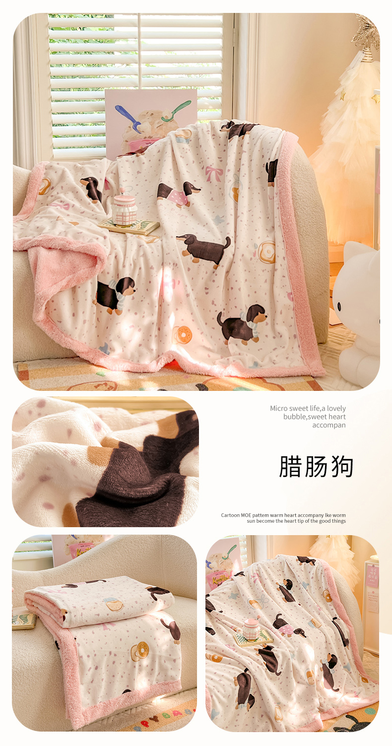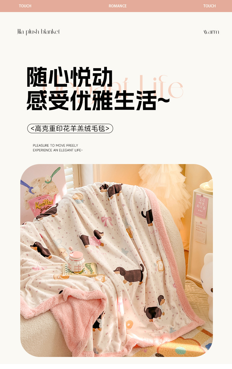 我心家纺 2024新款高克重羊羔绒毛毯毯子 腊肠狗