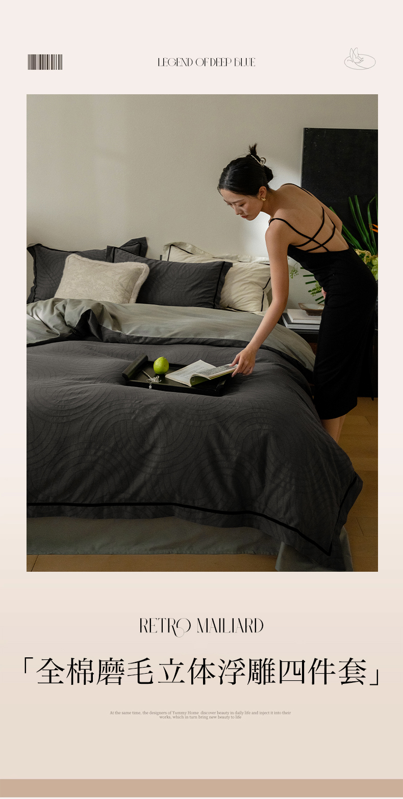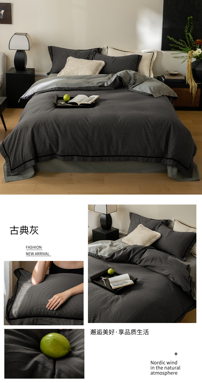 商品名称:2024新款老钱风复古秋冬全棉加厚立体浮雕磨毛四件套 古典灰