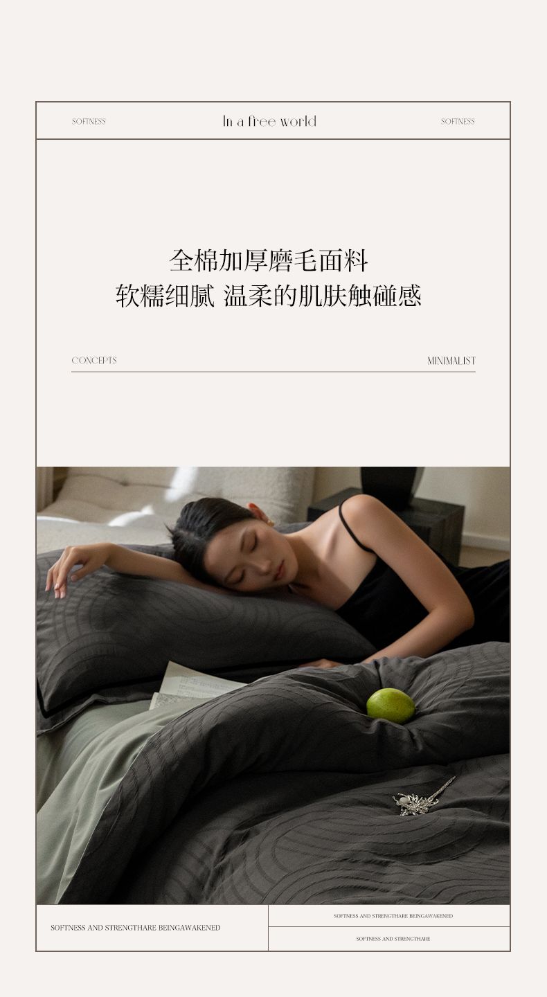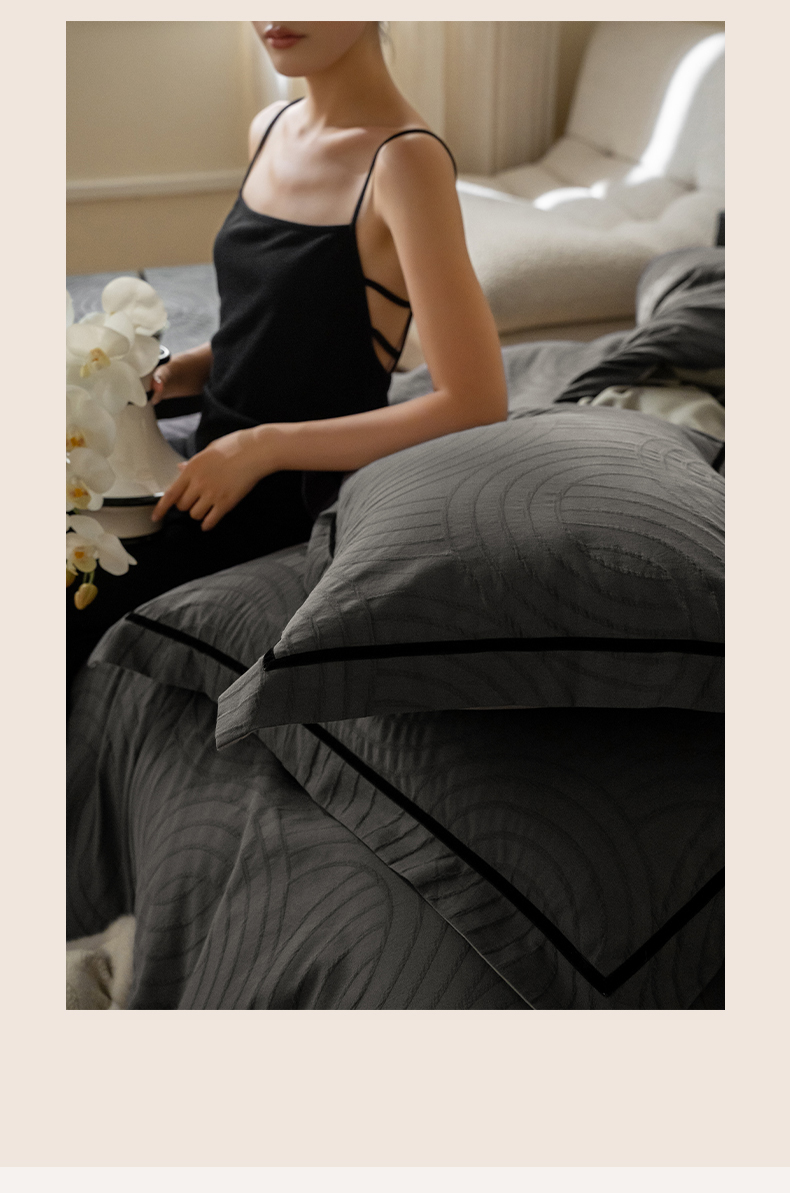 (总)圆岛家纺 2023新款黑白牛奶绒毛巾绣四件套,博克黑