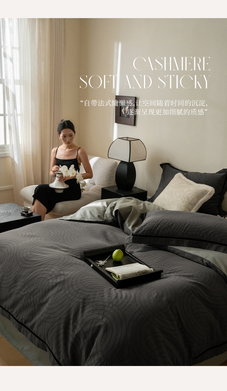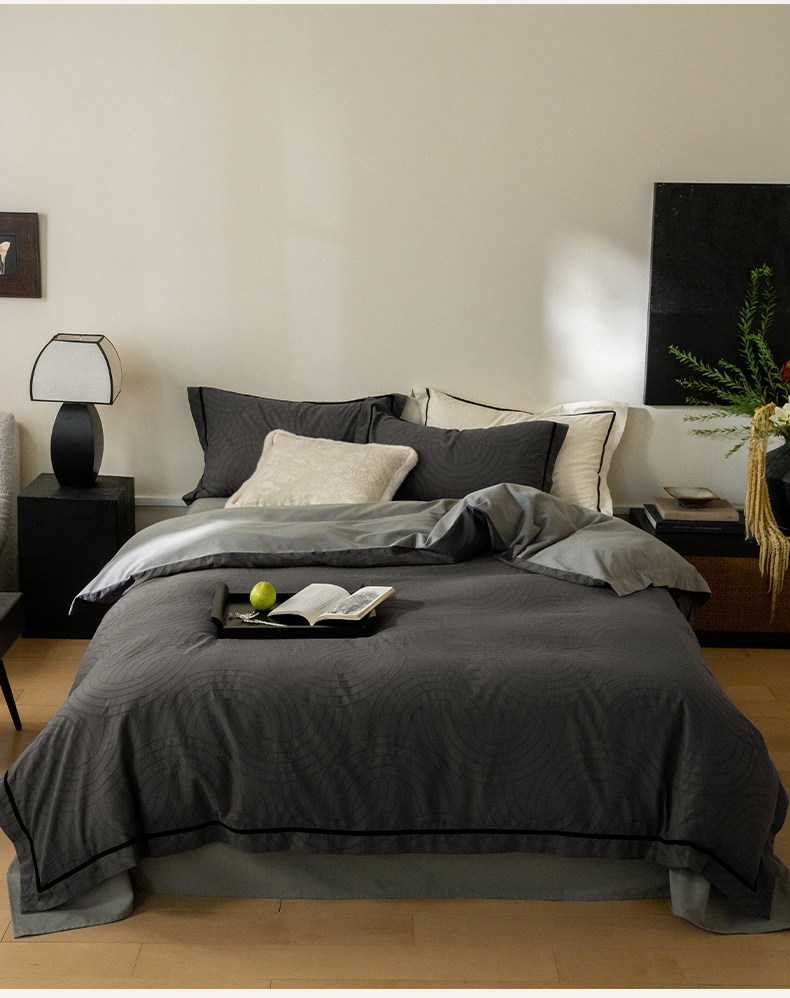 2024新款老钱风复古秋冬全棉加厚立体浮雕磨毛四件套 古典灰