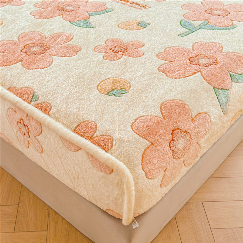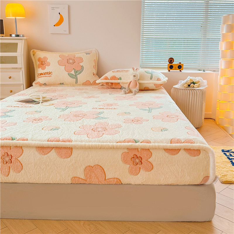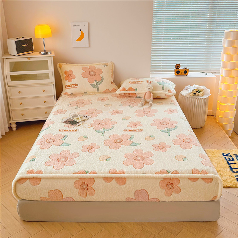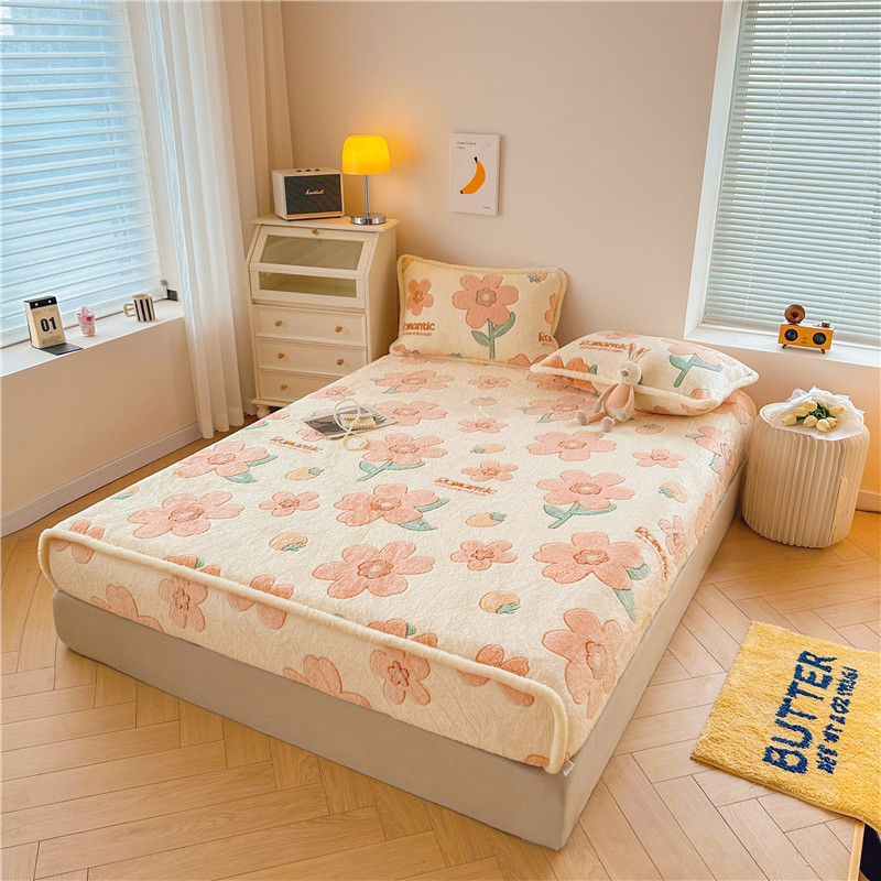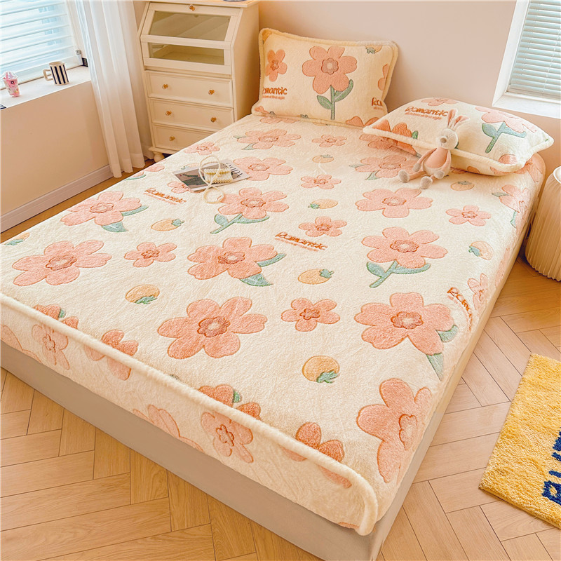 喜居 2024新款雪花绒床笠印花牛奶绒床笠三件套单床笠 向阳花