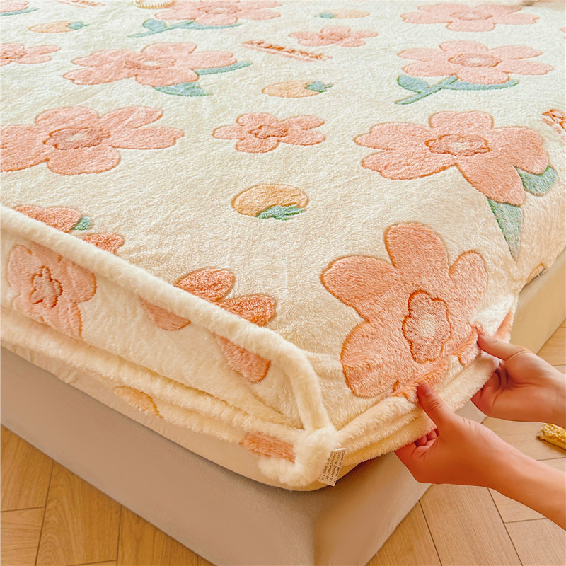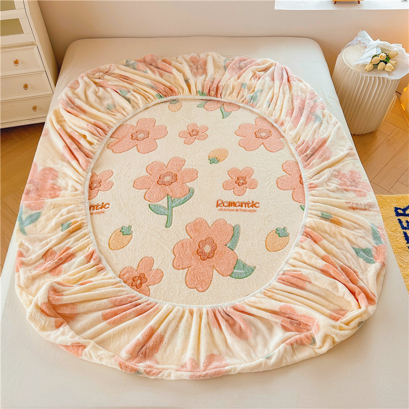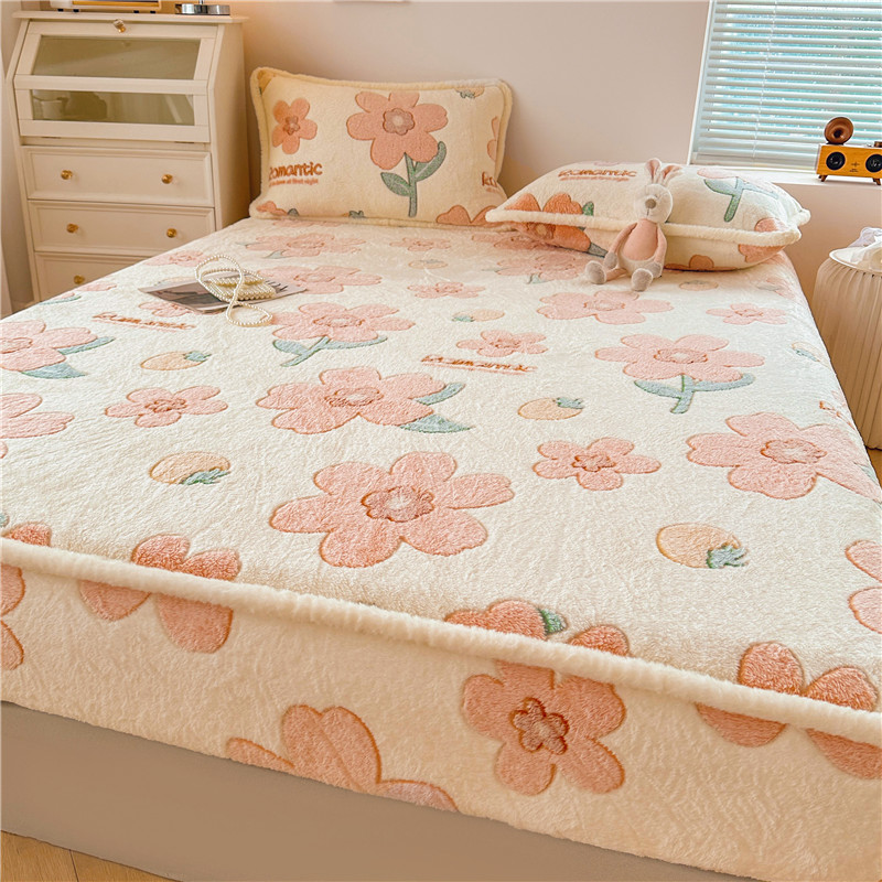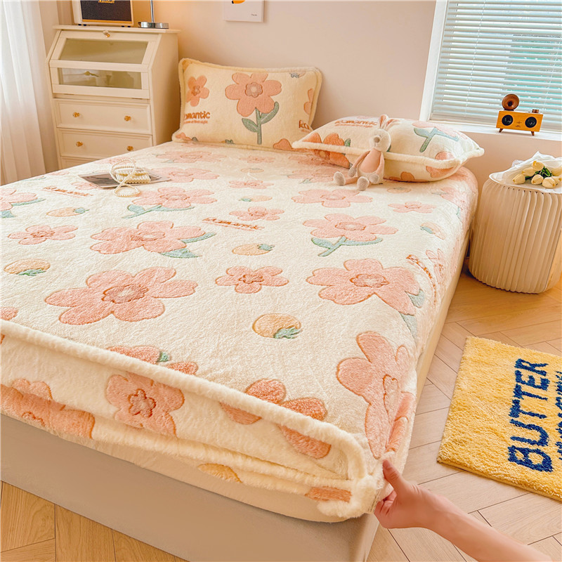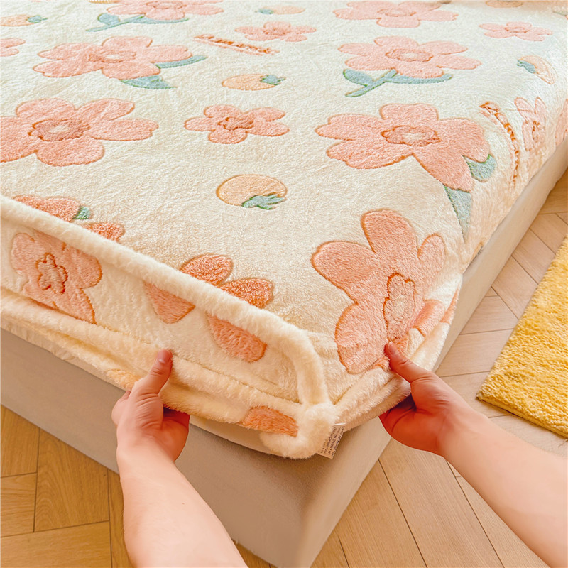 喜居 2024新款雪花绒床笠印花牛奶绒床笠三件套单床笠 向阳花