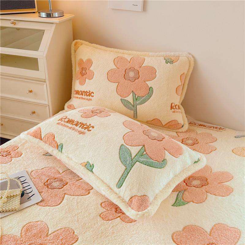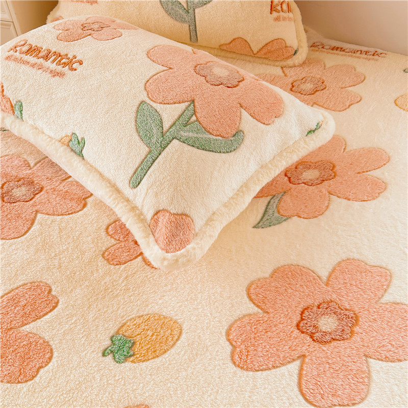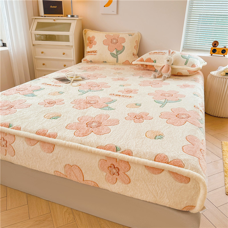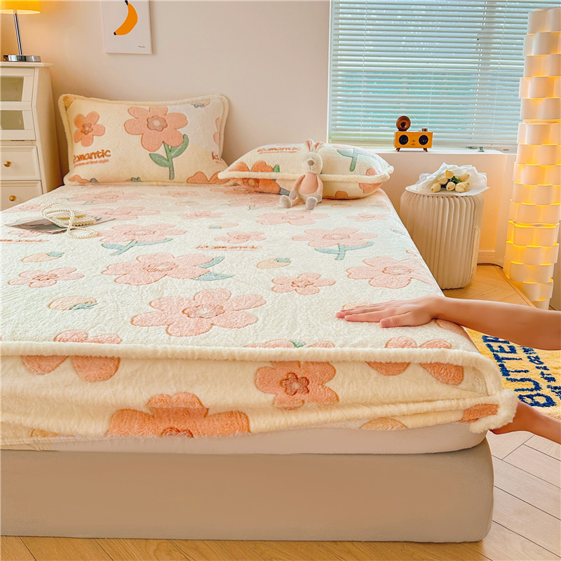 商品名称:喜居 2024新款雪花绒床笠印花牛奶绒床笠三件套单床笠 向阳花