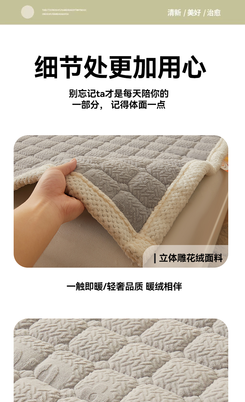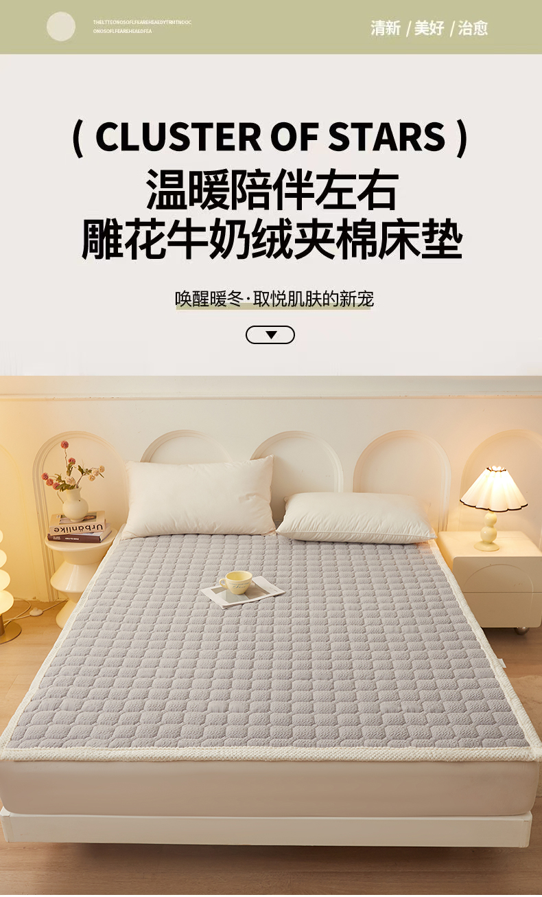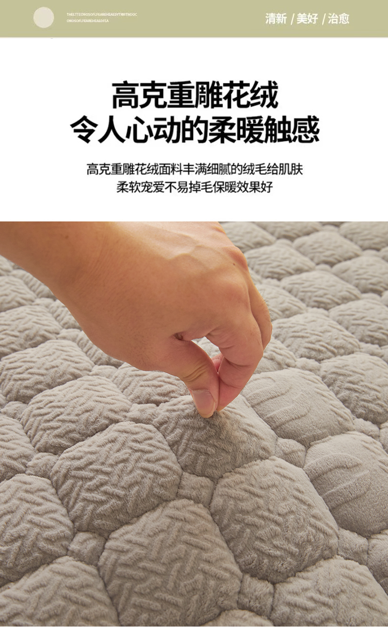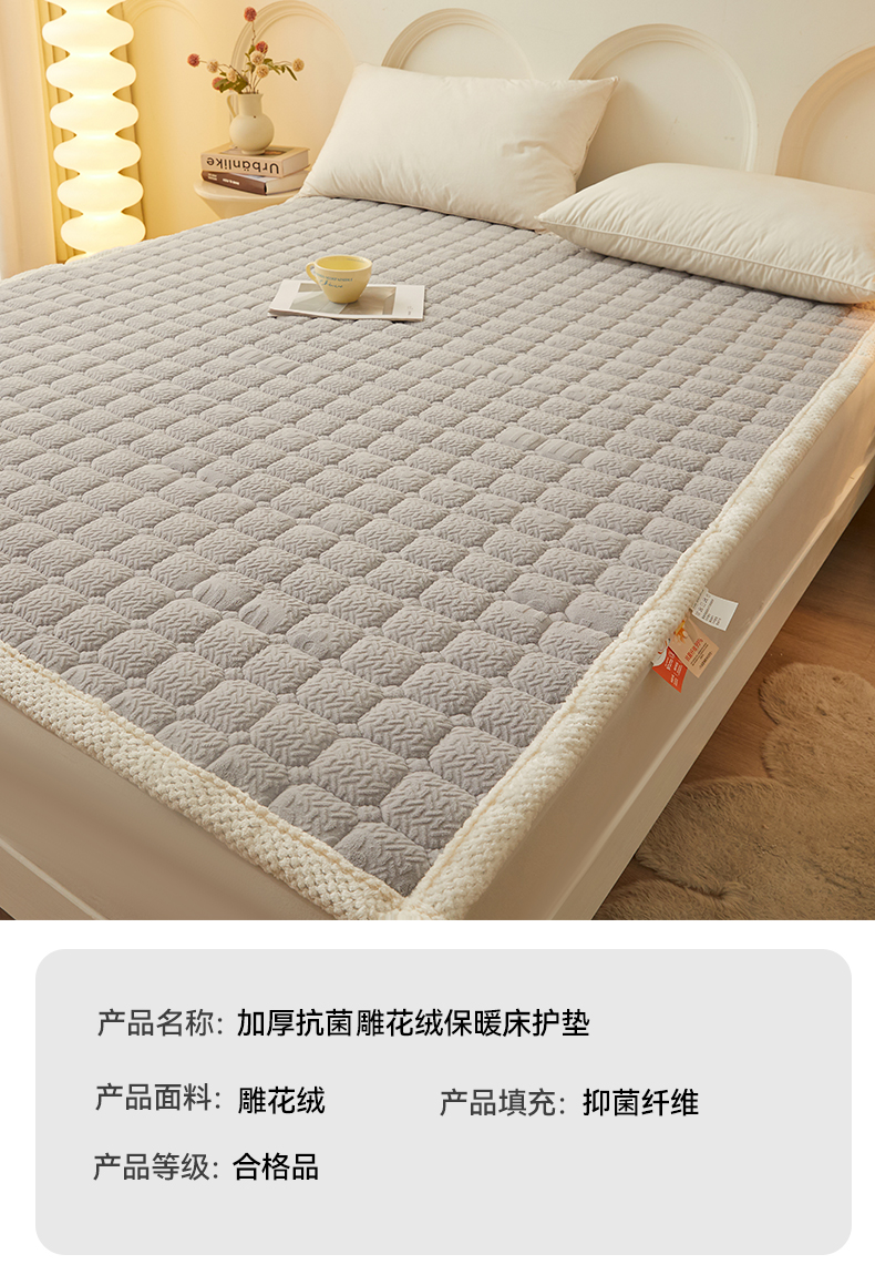当前位置: 91家纺网 > 商品网购 > 床垫/床褥 > 普通床垫 > 丽诺床垫 2024新款加厚抗菌雕花绒保暖床垫 灰色-雕花绒床褥