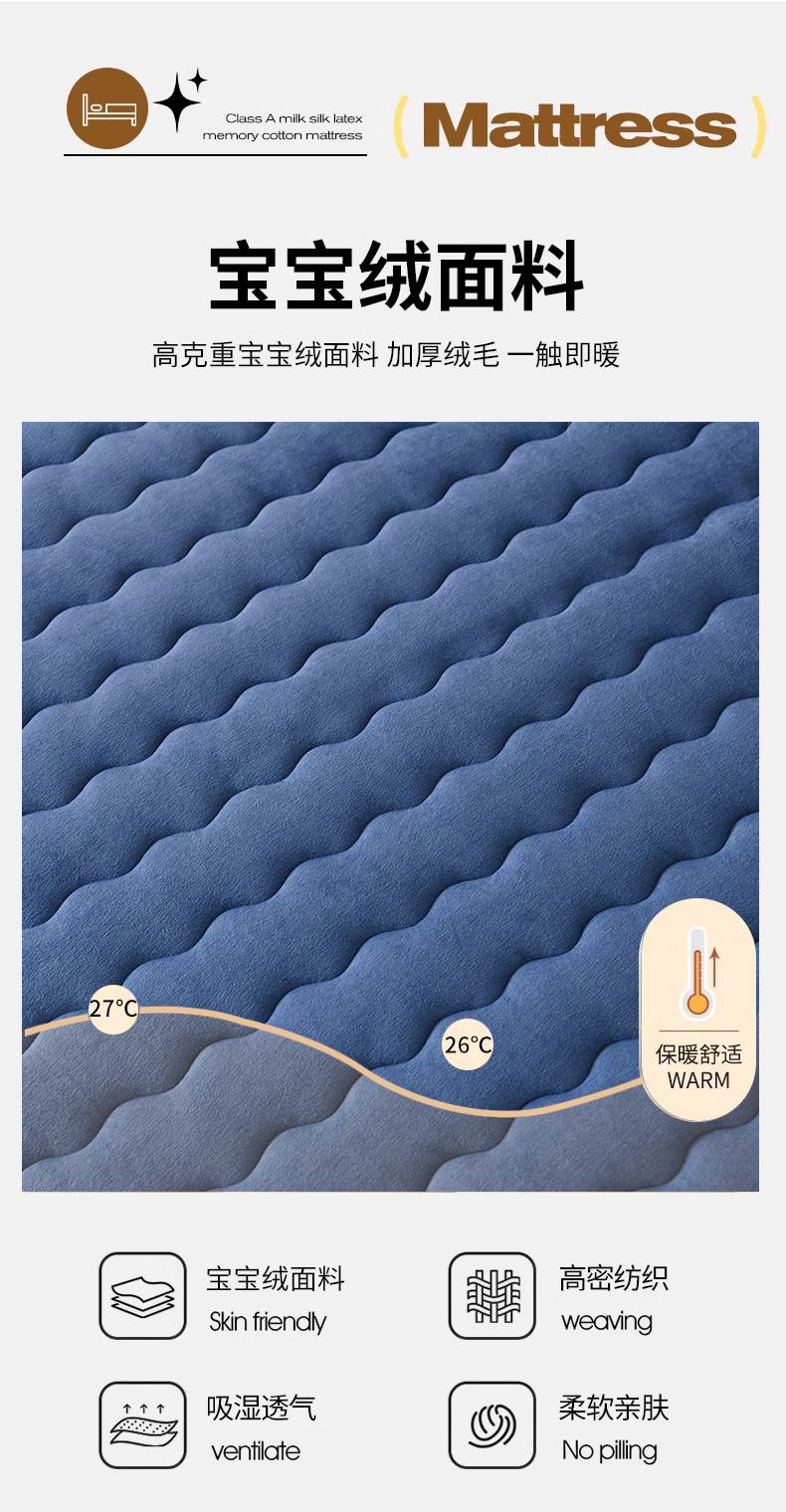 当前位置: 91家纺网 > 商品网购 > 床垫/床褥 > 普通床垫 > 顺发床垫 2025新款宝宝绒抗压棉床垫 宝宝绒-蓝6cm