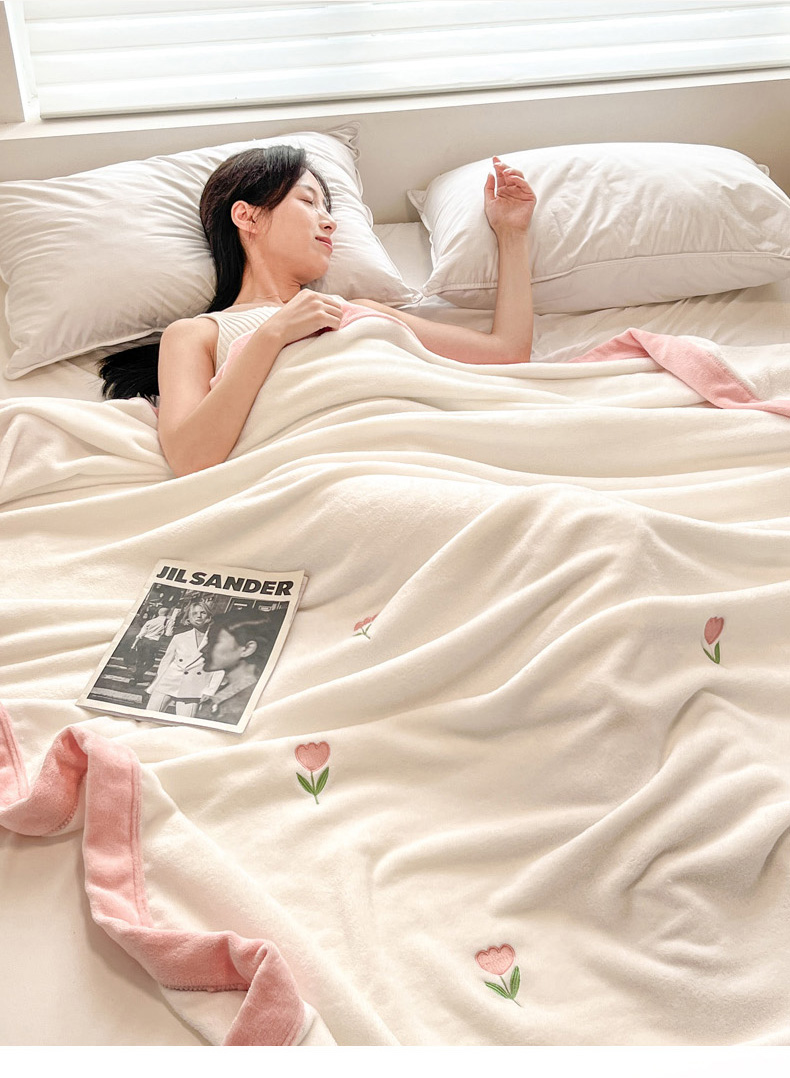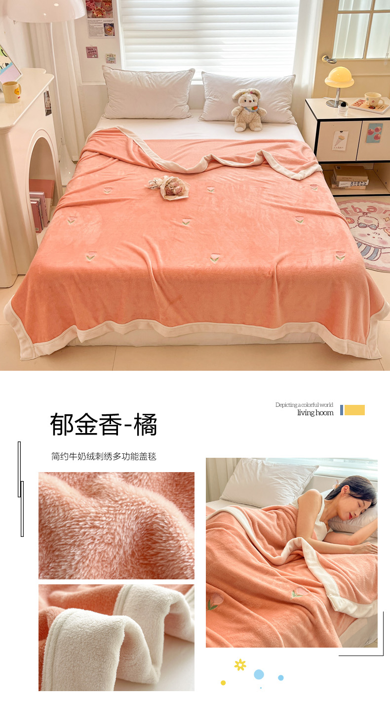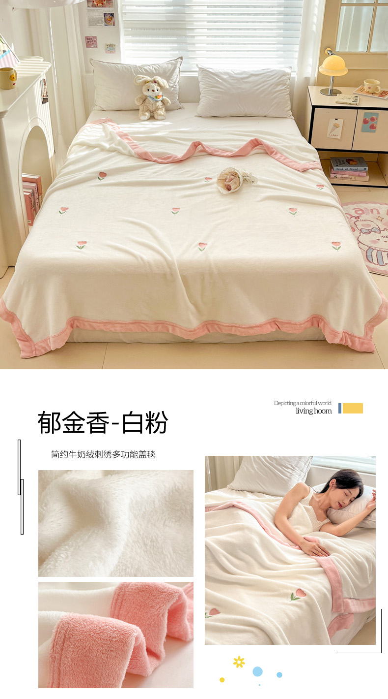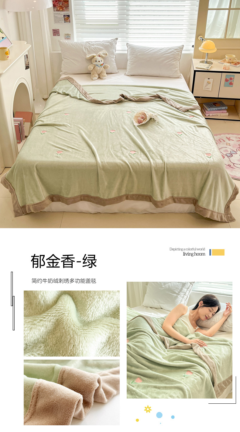 (总)慕尚 2025新款简约双面牛奶绒刺绣多功能盖毯-郁金香