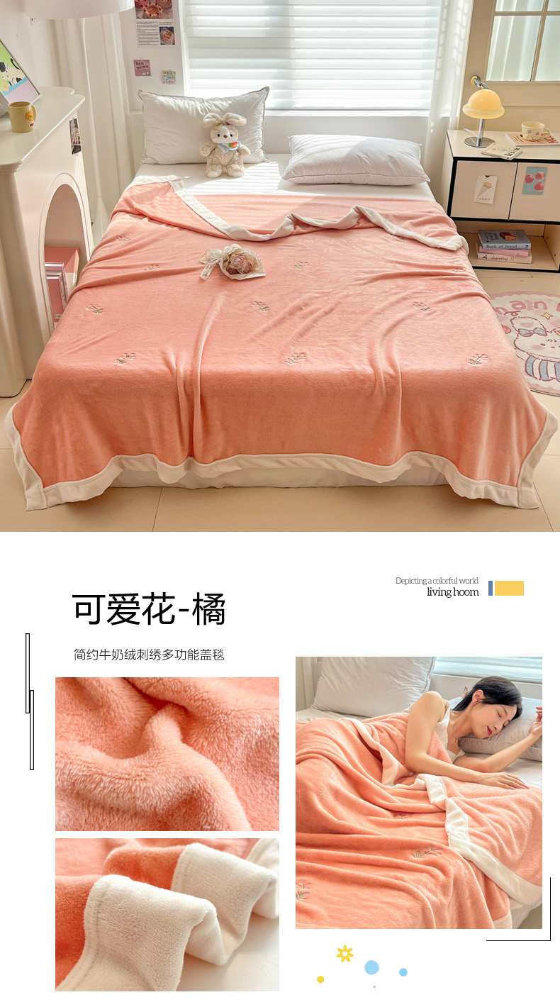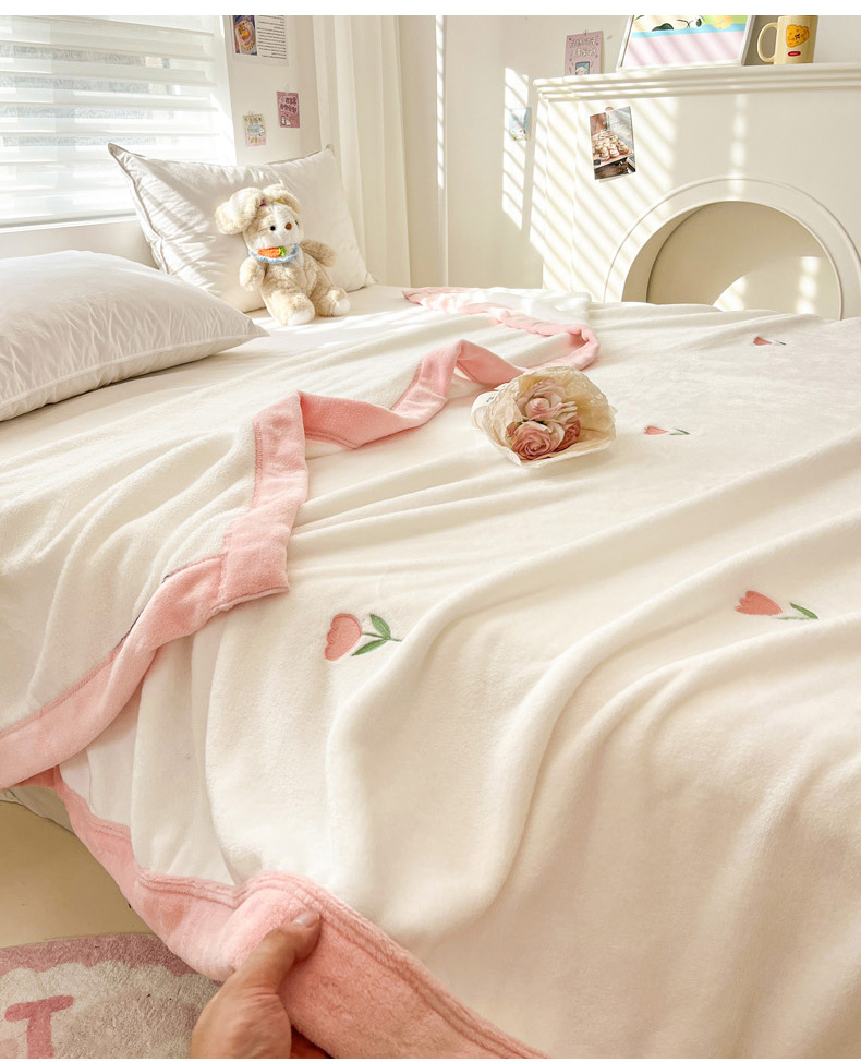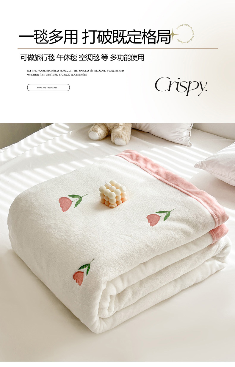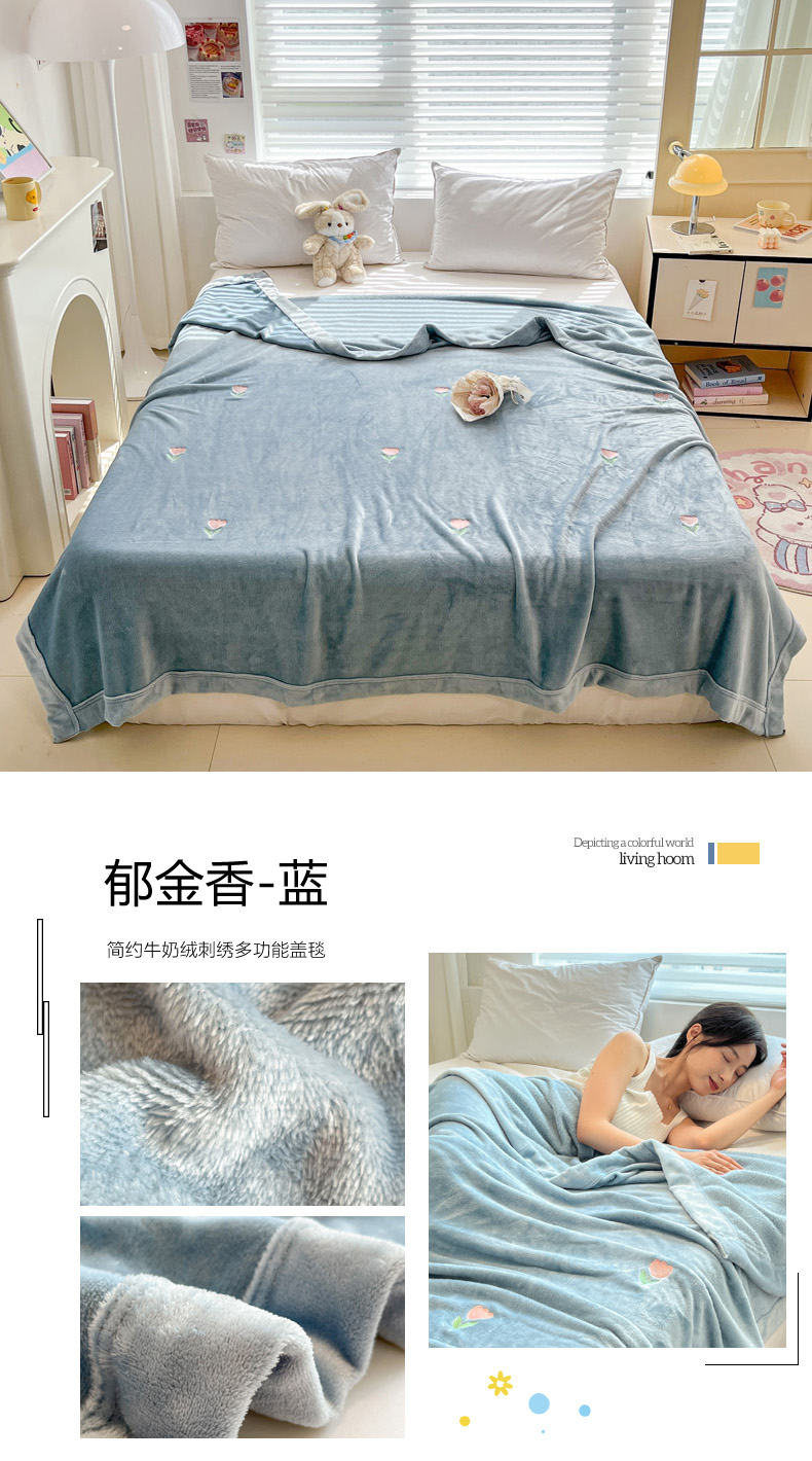 (总)慕尚 2025新款简约双面牛奶绒刺绣多功能盖毯-郁金香