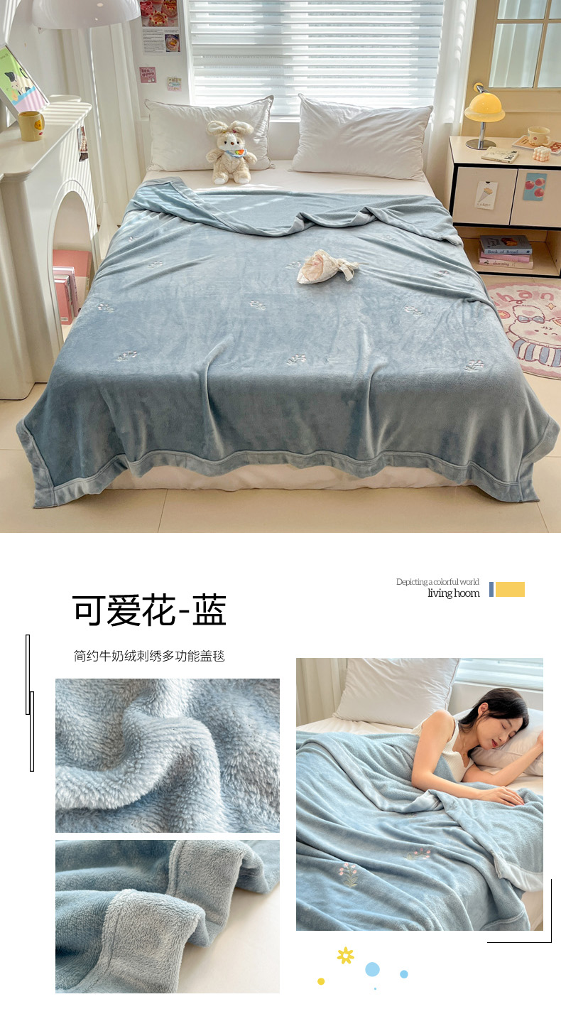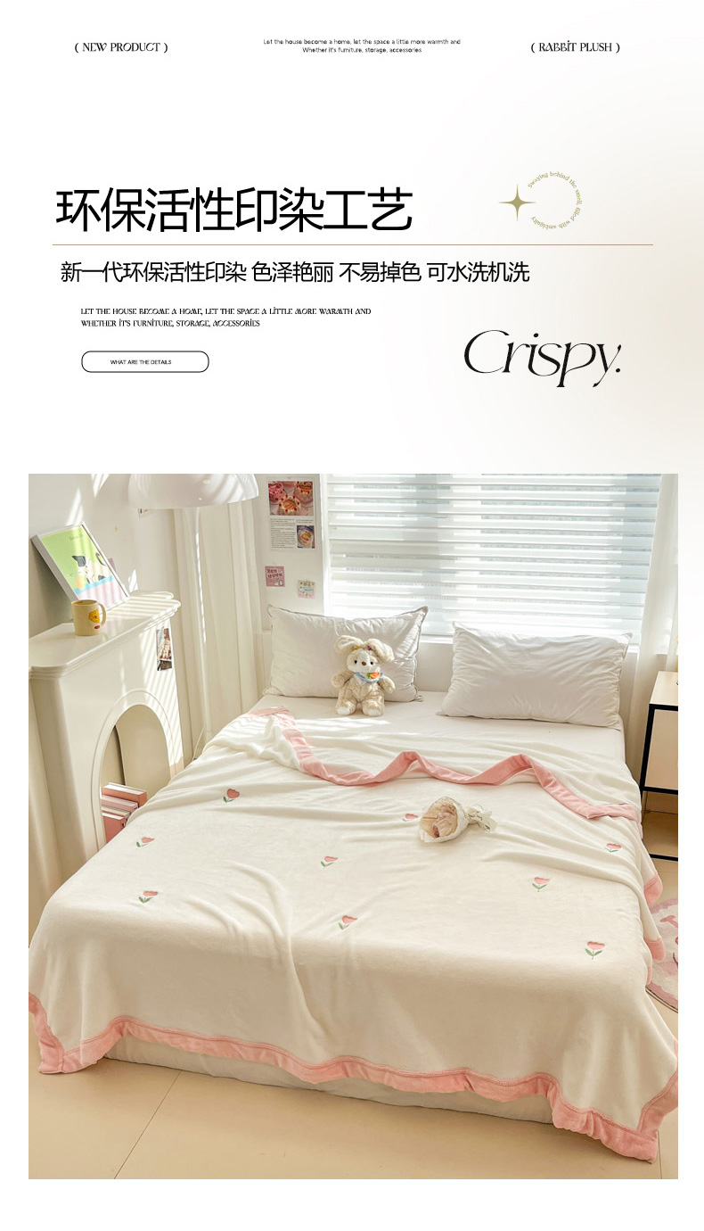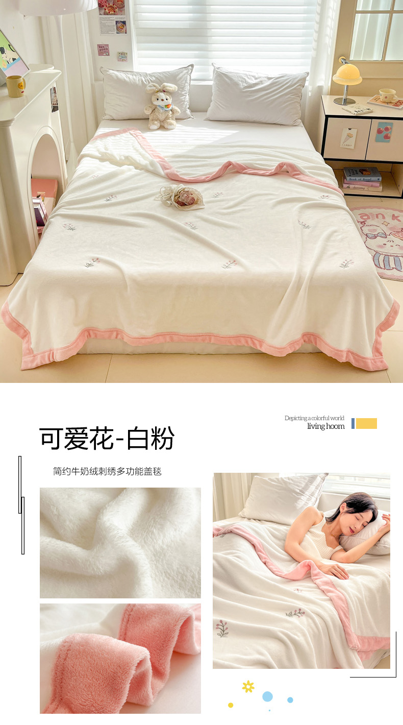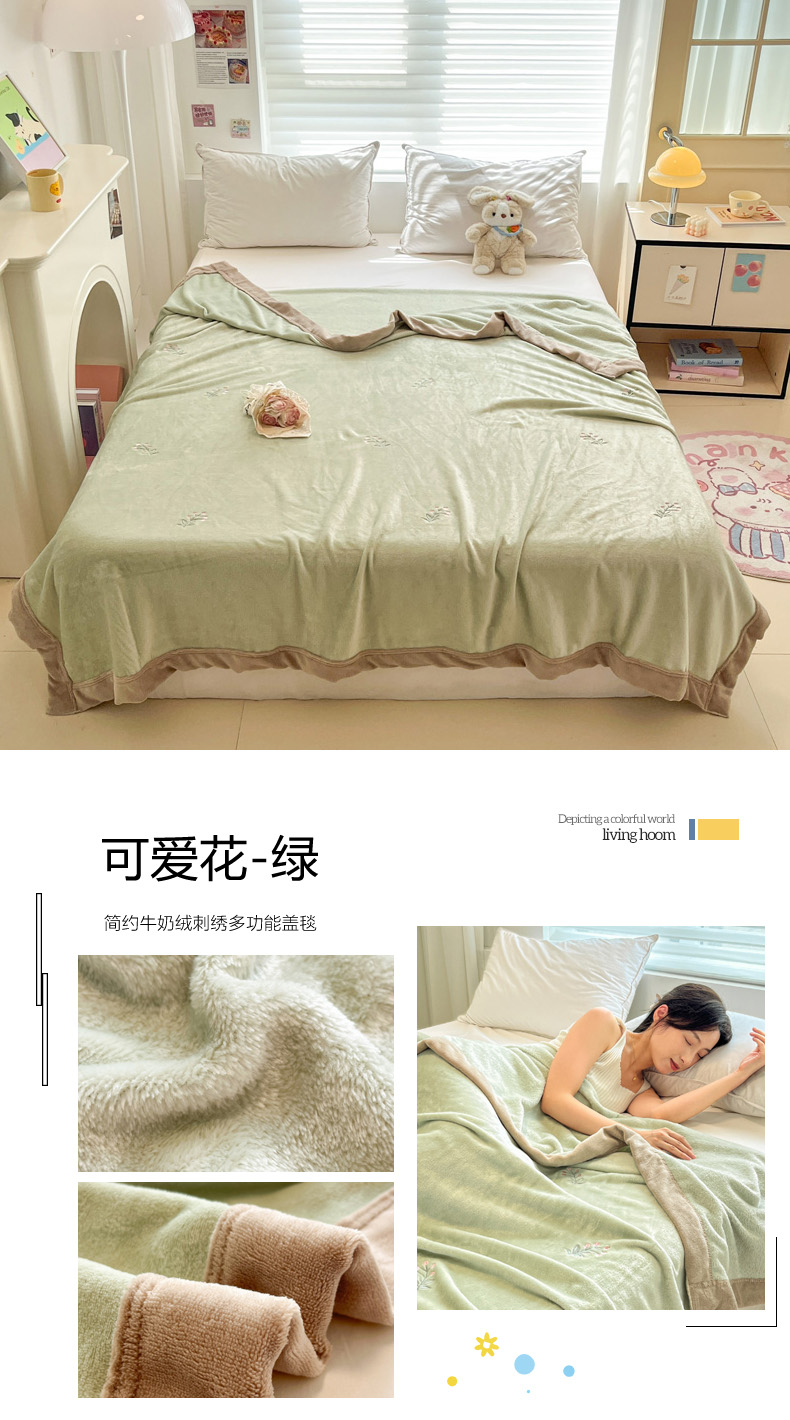 (总)慕尚 2025新款简约双面牛奶绒刺绣多功能盖毯-郁金香