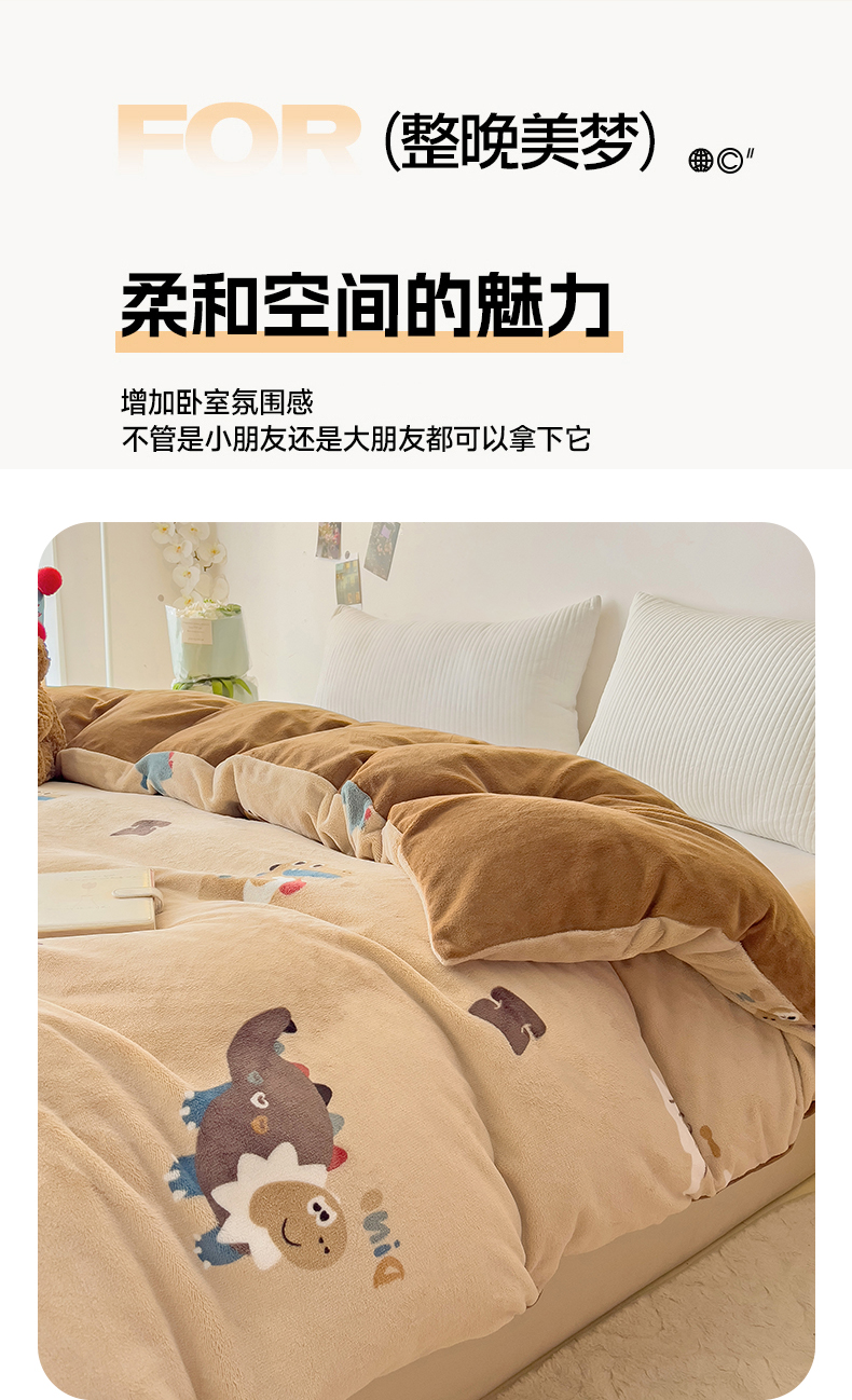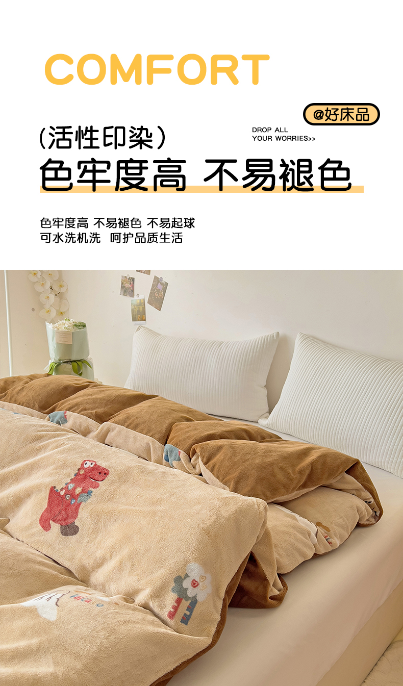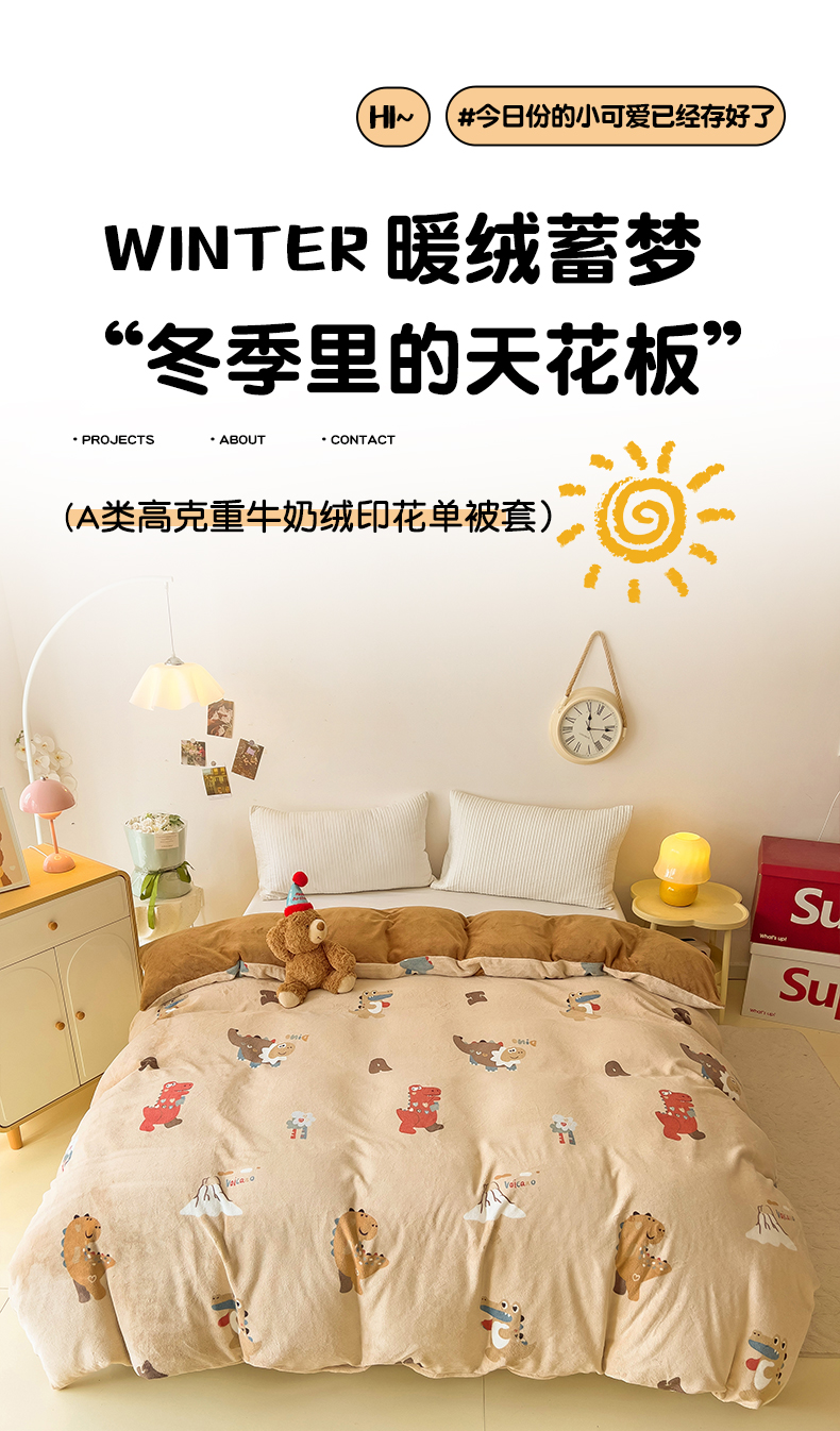 • 91家纺网 家纺一手货源 找家纺 大柏树 2025新款A类高克重亲肤舒适牛奶绒印花四件套-单被套可定制 恐龙世界