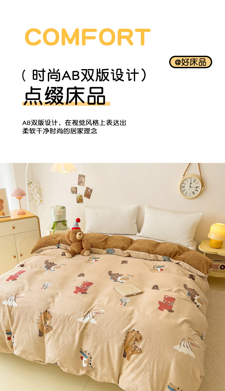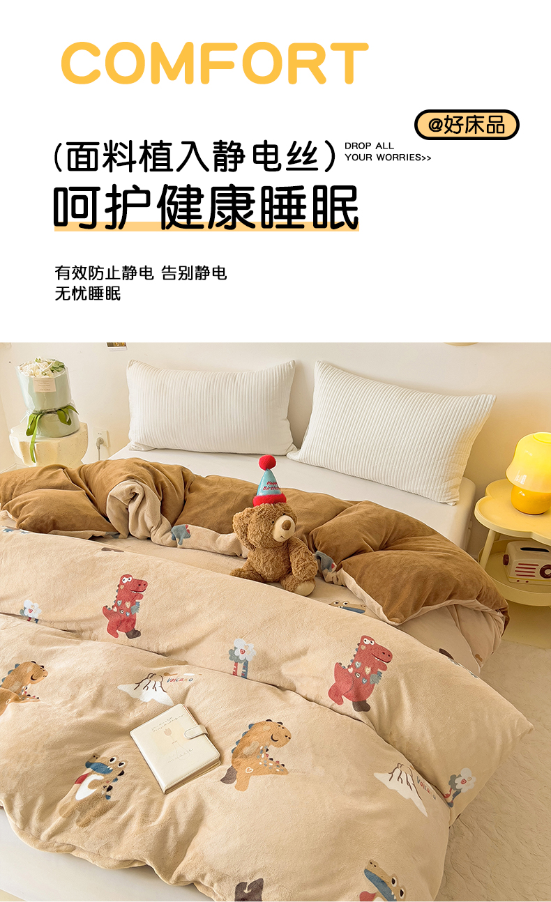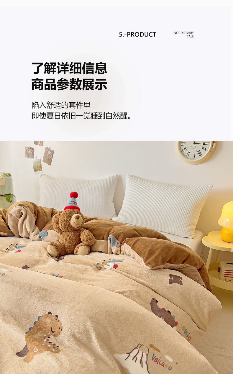 • 91家纺网 家纺一手货源 找家纺 大柏树 2025新款A类高克重亲肤舒适牛奶绒印花四件套-单被套可定制 恐龙世界