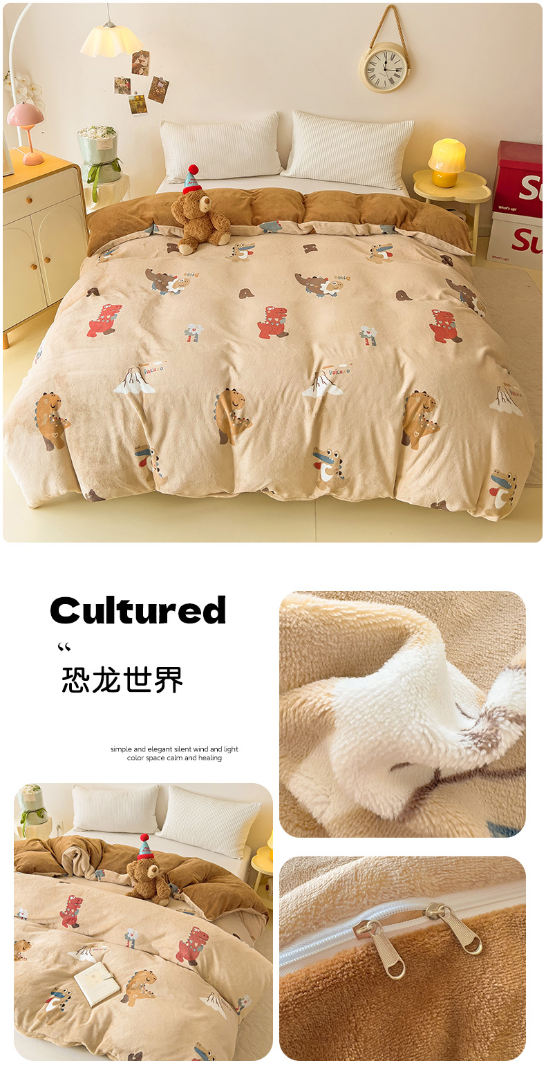 大柏树 2025新款A类高克重亲肤舒适牛奶绒印花四件套-单被套可定制 恐龙世界