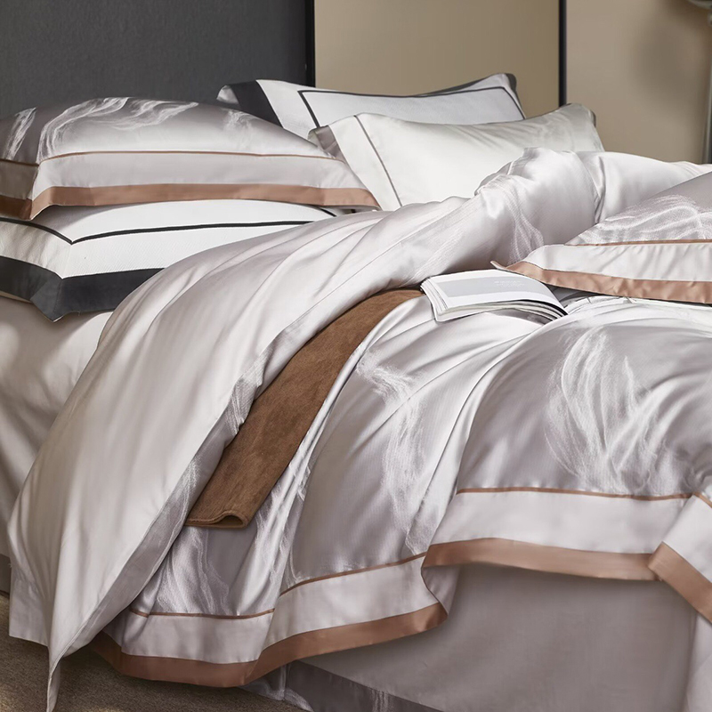 玖玖爱家纺 2024新款意大利水光肌提花缎四件套 时光清浅白