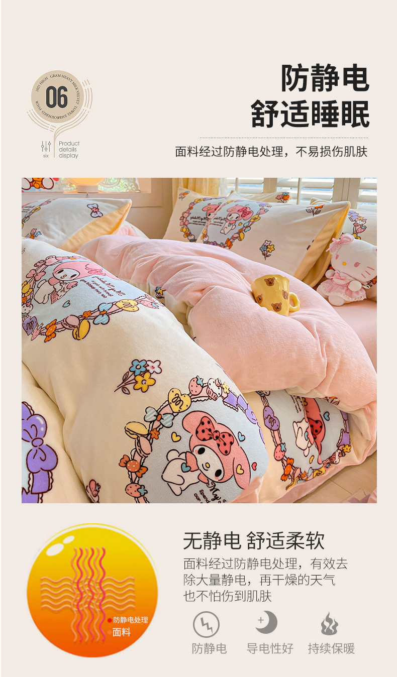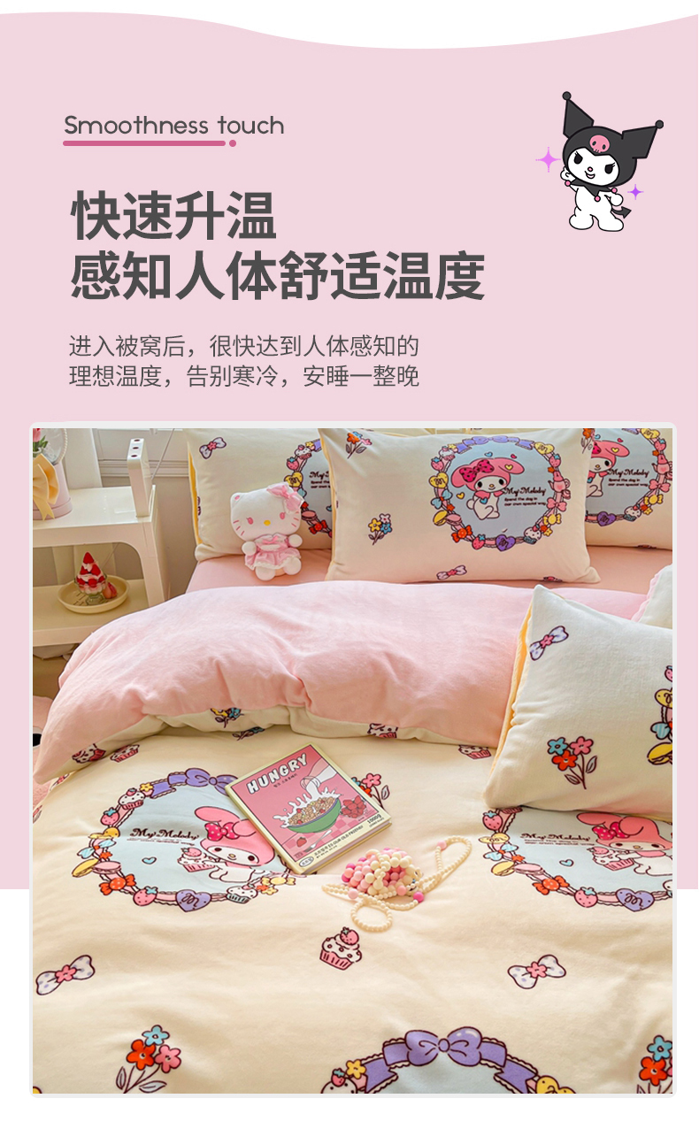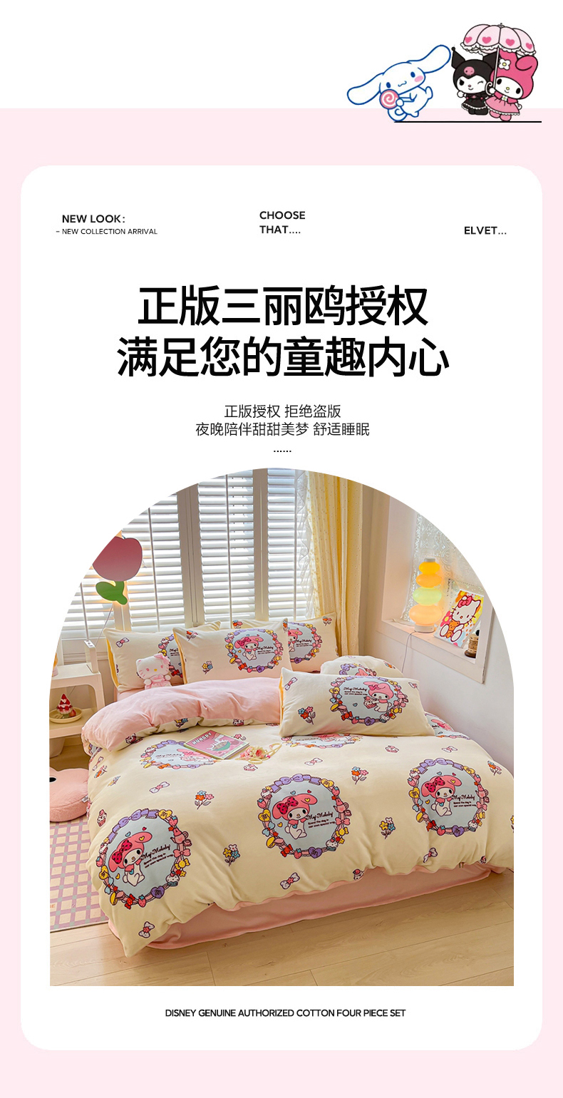 商品名称:星座家纺 2025新款三丽鸥小版牛奶绒四件套 美乐蒂