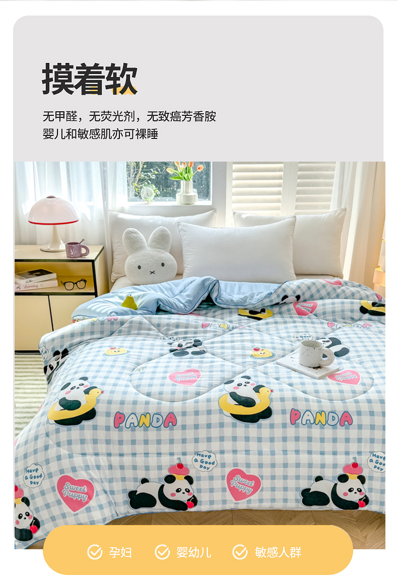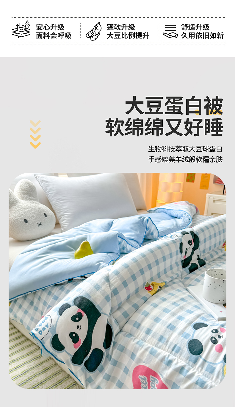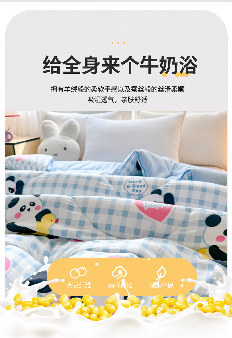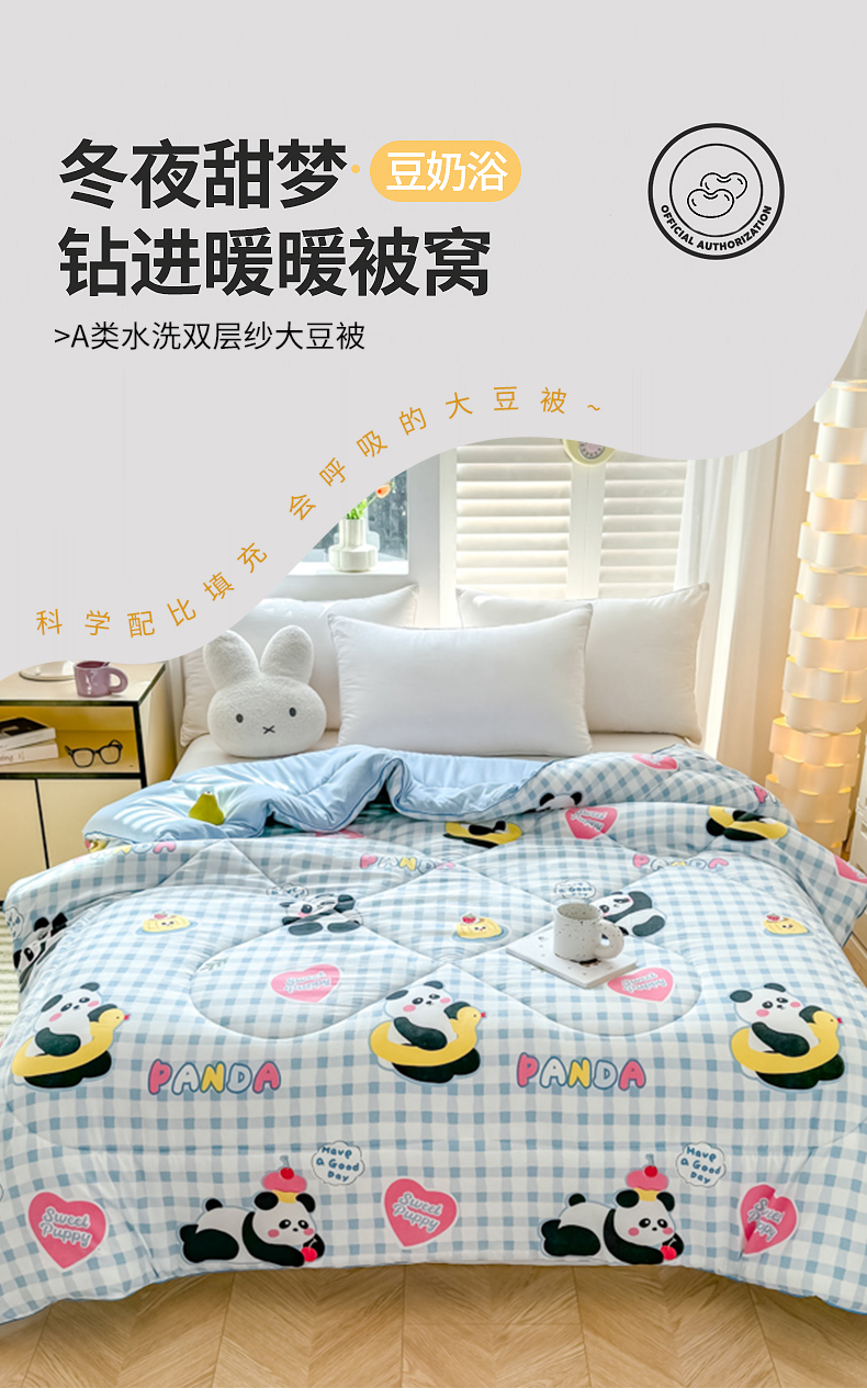 艺菲阁家纺 2024新款A类水洗双层纱大豆纤维被冬被新花型 自由熊猫