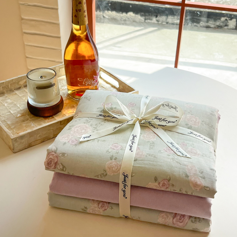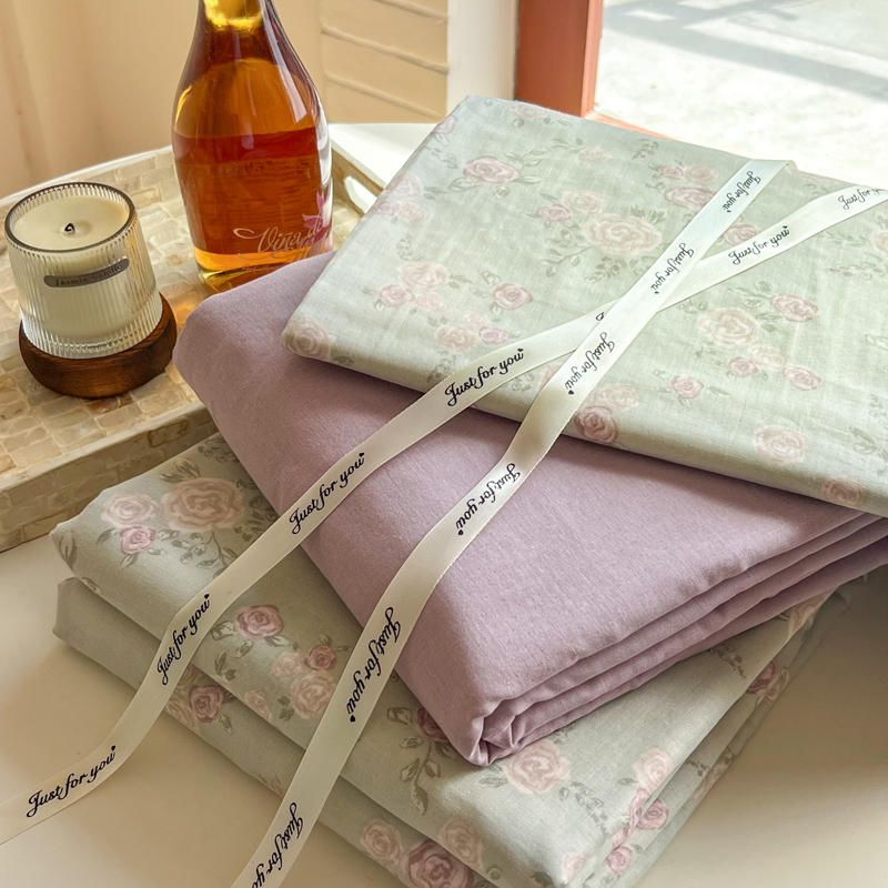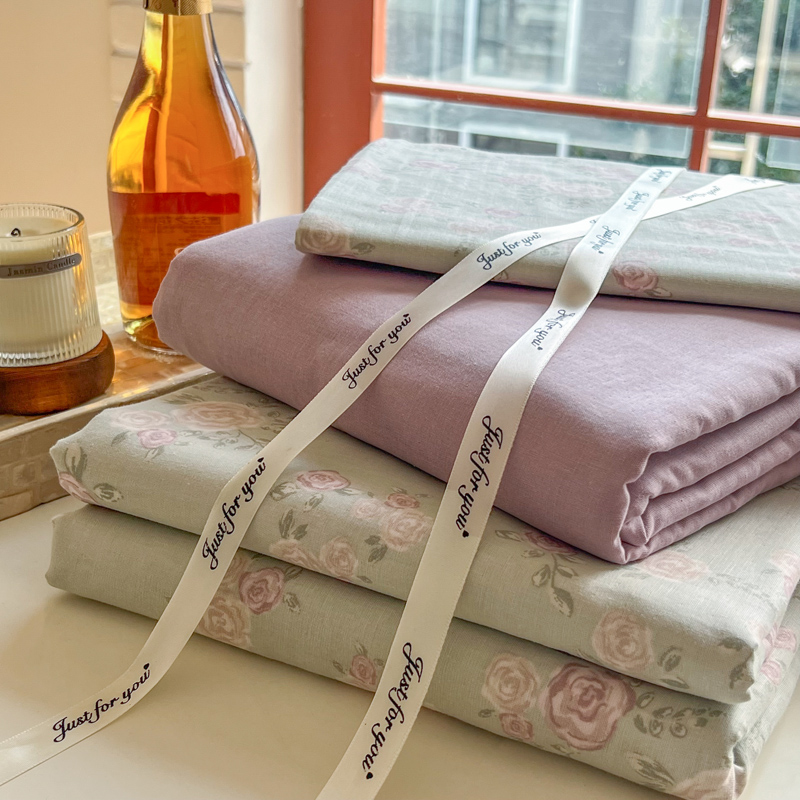商品名称:一比一家纺 2025新款全棉母婴级抗菌有氧全棉双层纱亲肤全棉小清新印花三件套四件套 木槿-紫