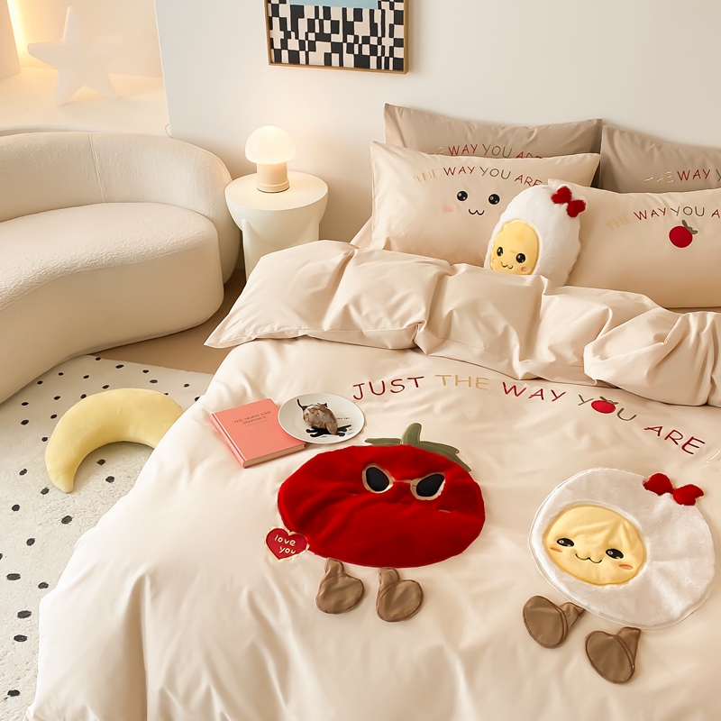 商品名称:朗莎家纺 2024新款卡通系列磨毛五件套 柿柿如意