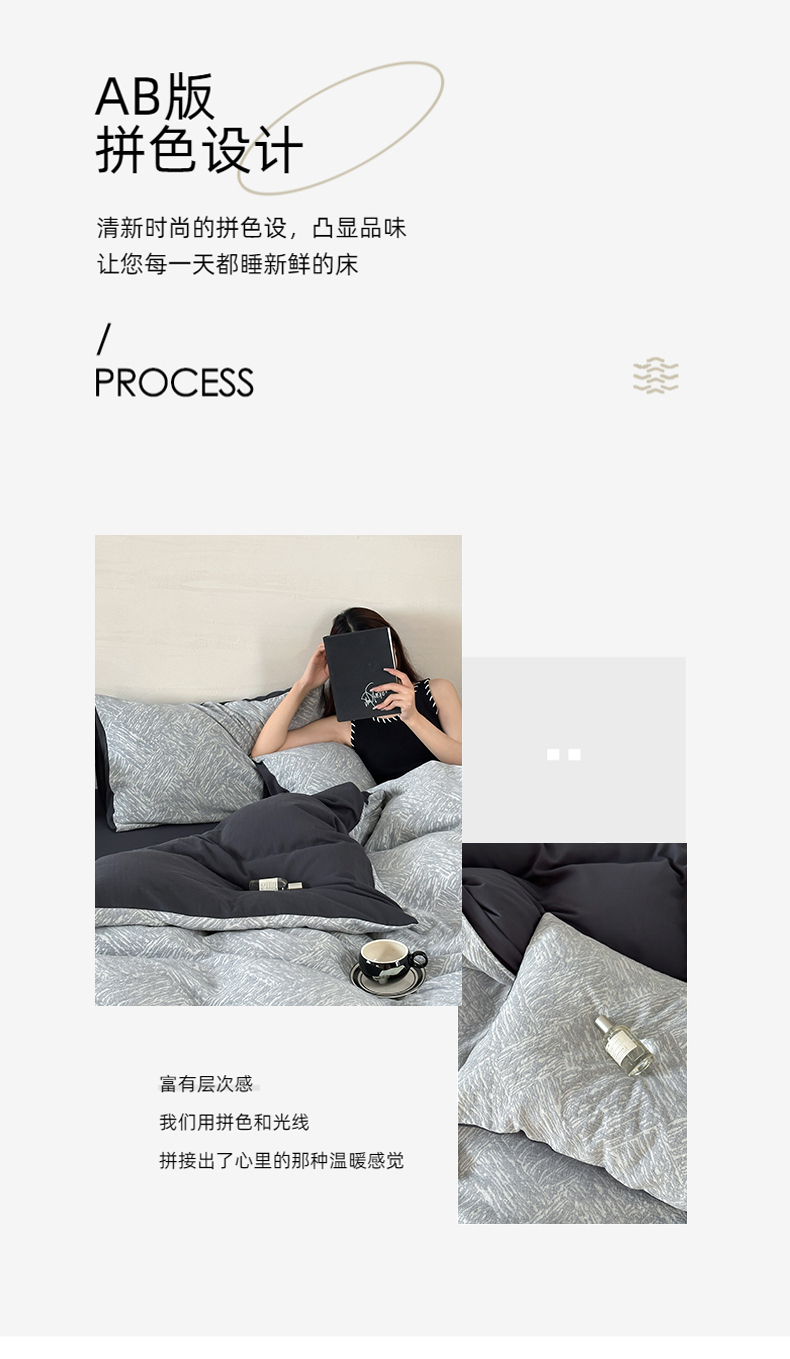 (总)梦享生活家居 2025新款全棉肌理纹提花四件套,灰黑色