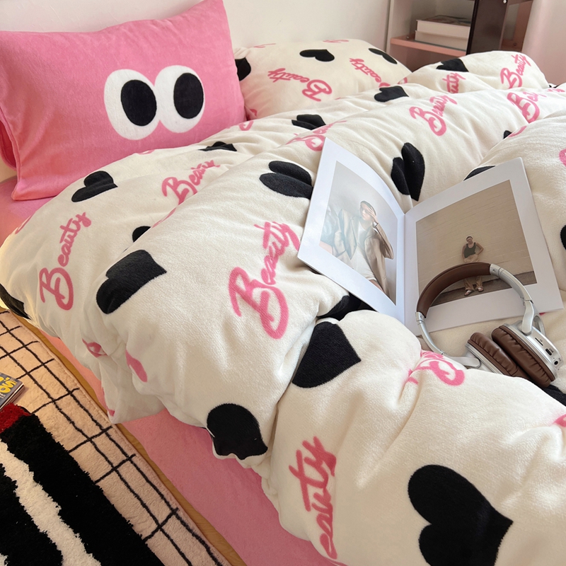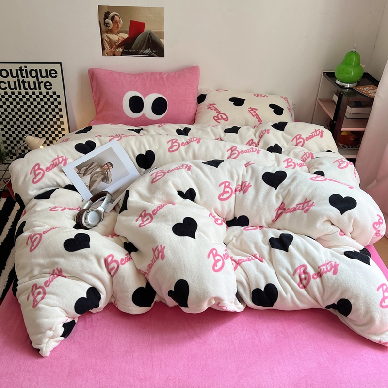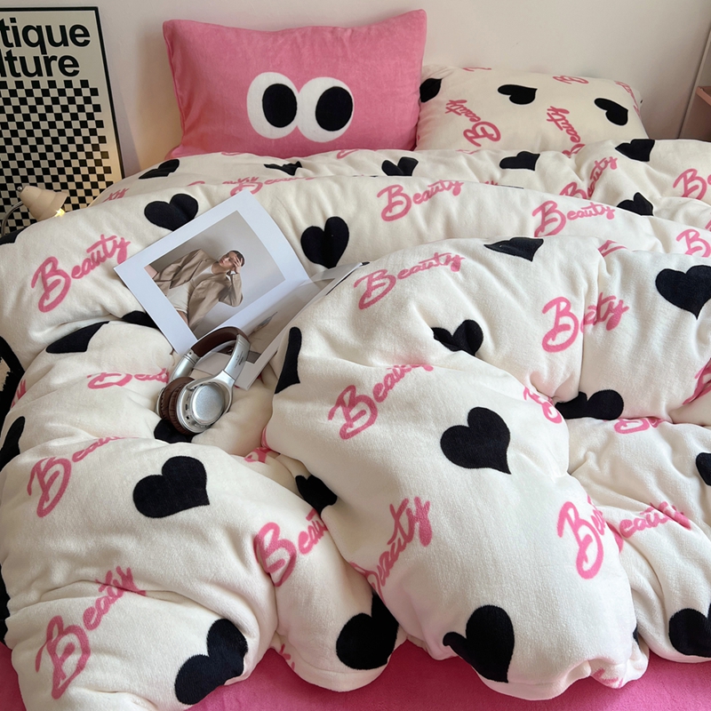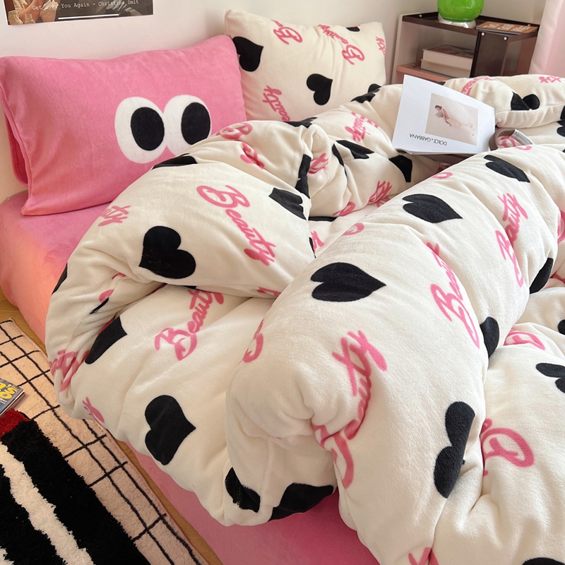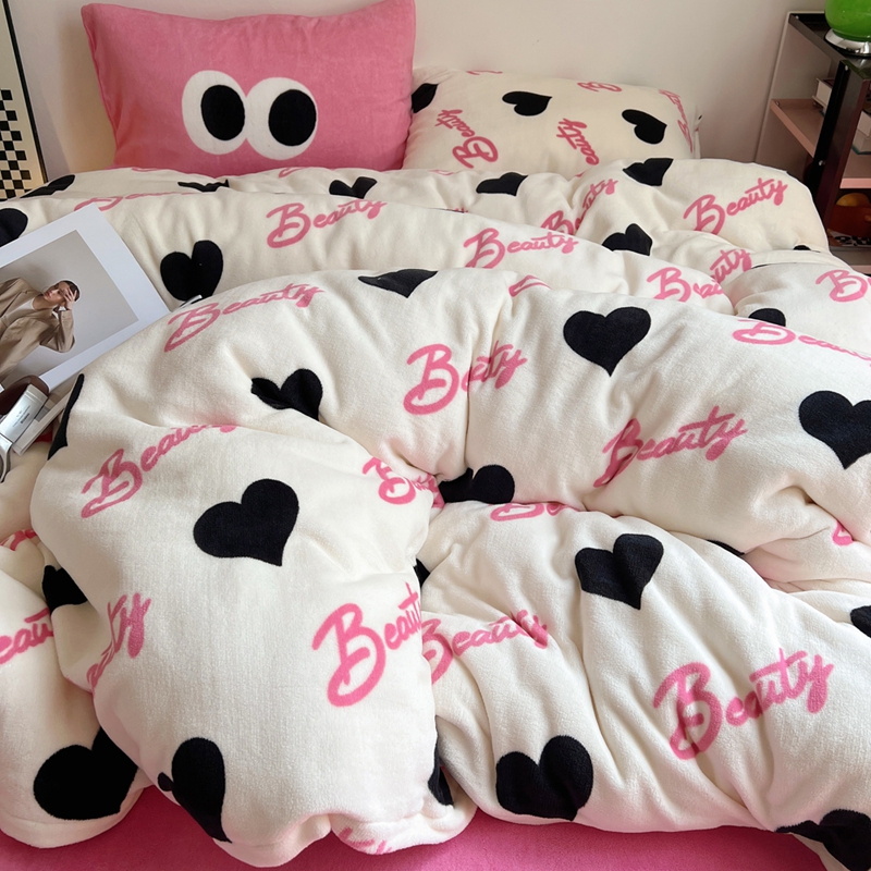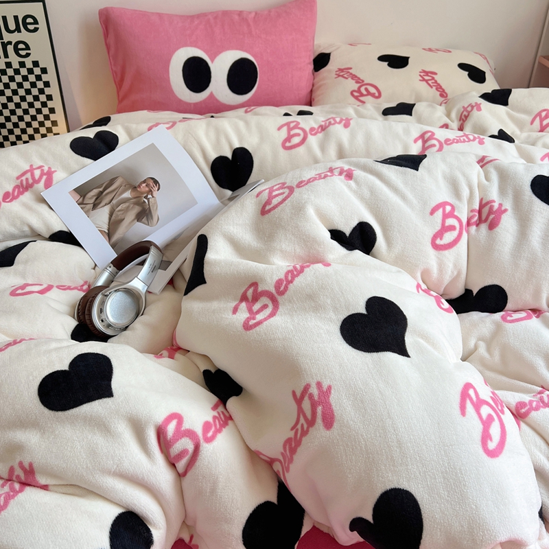 桃喜 2024新款多巴胺牛奶绒甜酷时尚混搭系列四件套 多巴胺