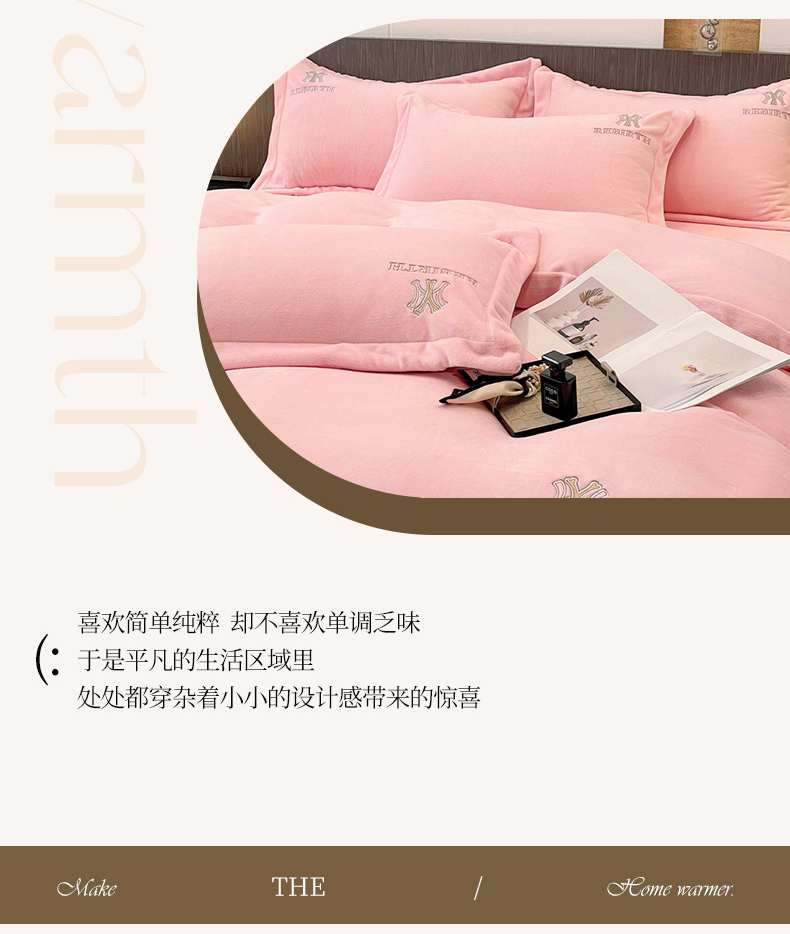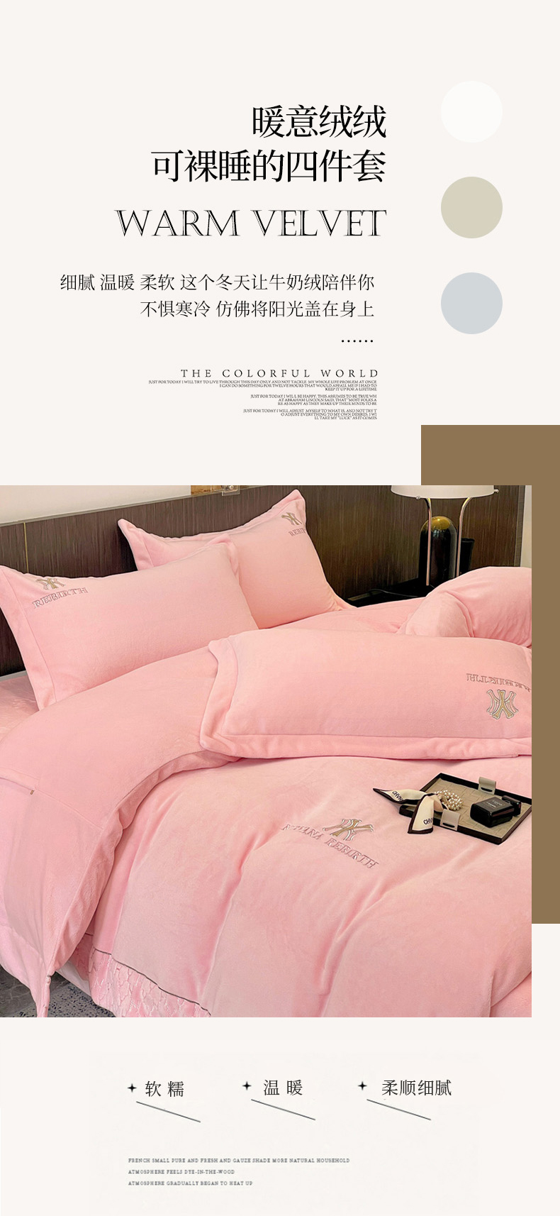 (总)星尚家纺 2024新款全消光230g牛奶绒刺绣保暖四件套-花漾,晨雾绿,豆沙粉,樱花粉