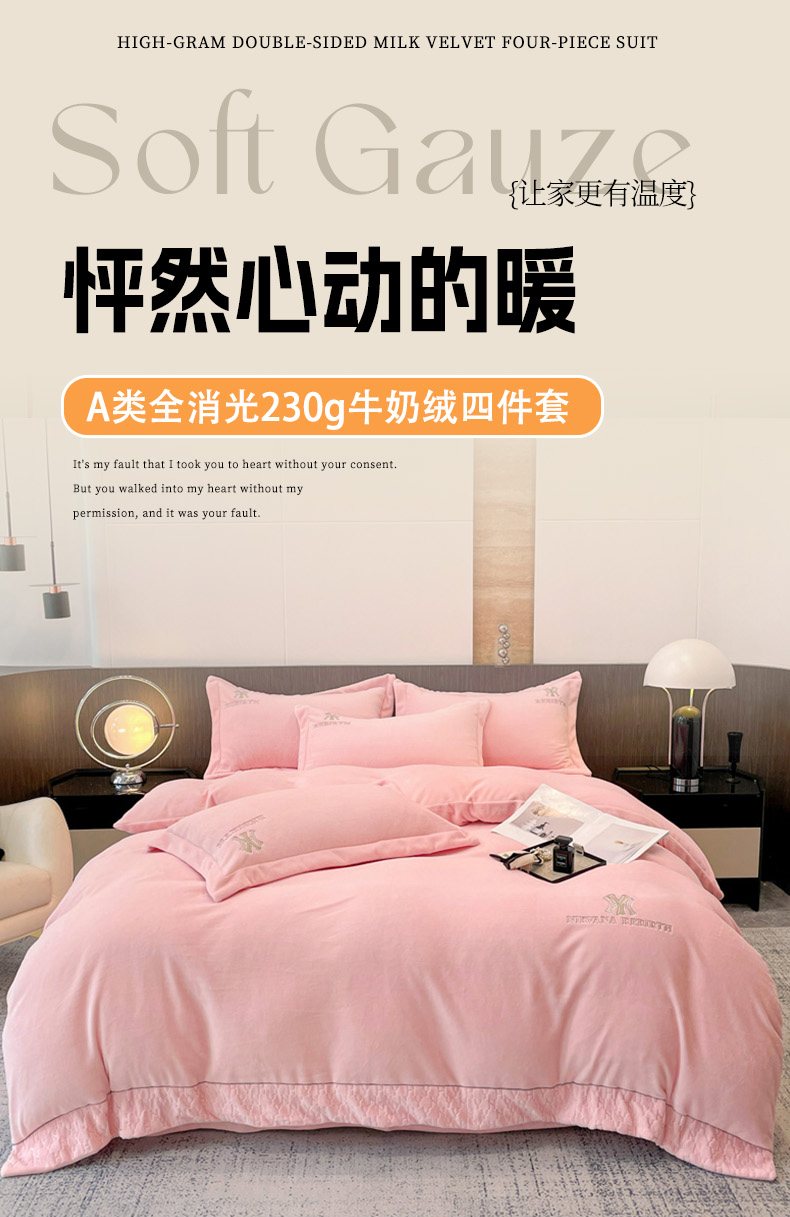 星尚家纺 2024新款全消光A类230g牛奶绒四件套-维也纳 樱花粉