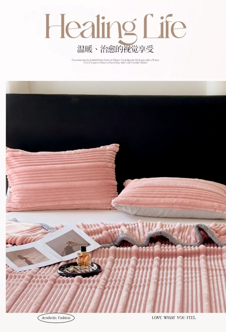 商品名称:圣比熊 2025新款兔毛绒子母条枕套 豆粉